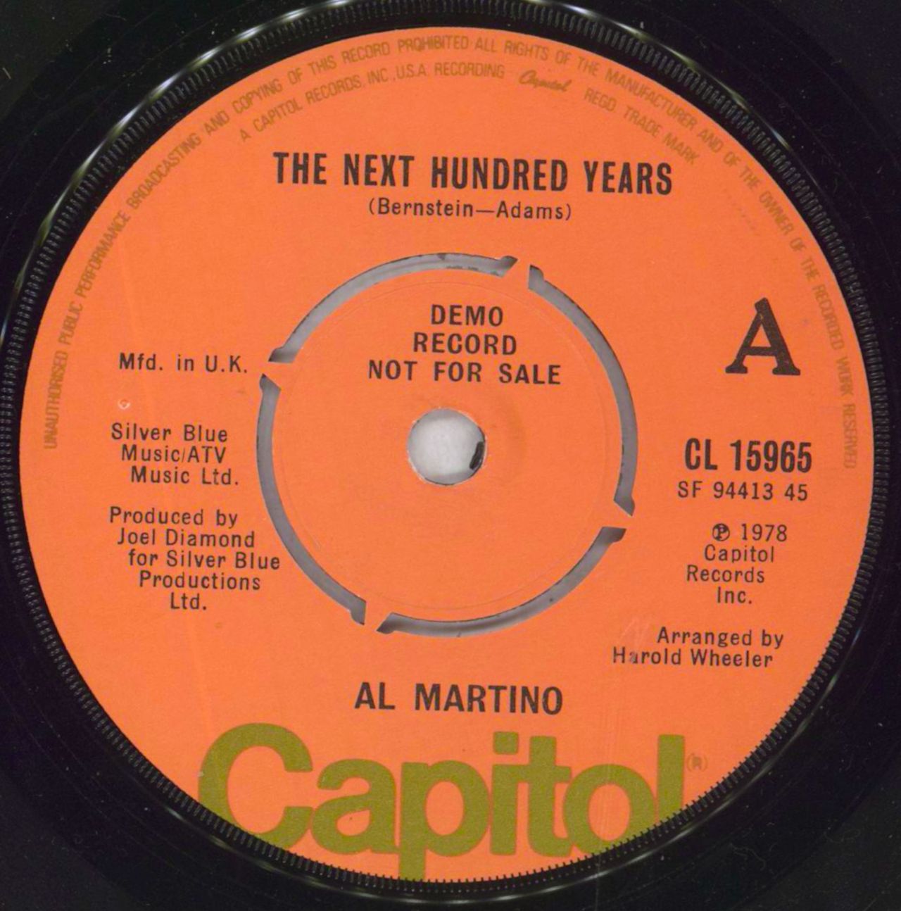 AL MARTINO The Next Hundred Years (1978 UK 'A' label