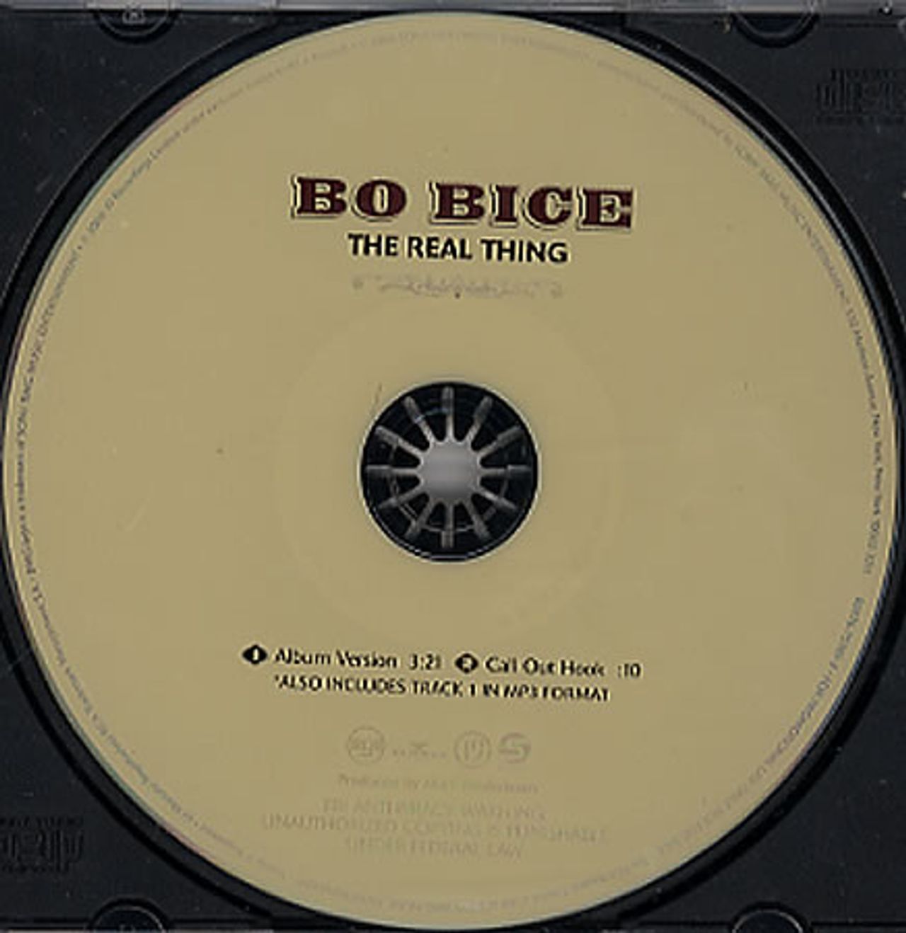 BO BICE The Real Thing (2005 US 2-track promotional CD single featuring Album Version and Call Out Hook, also includes track 1 in MP3 format, custom printed disc)
