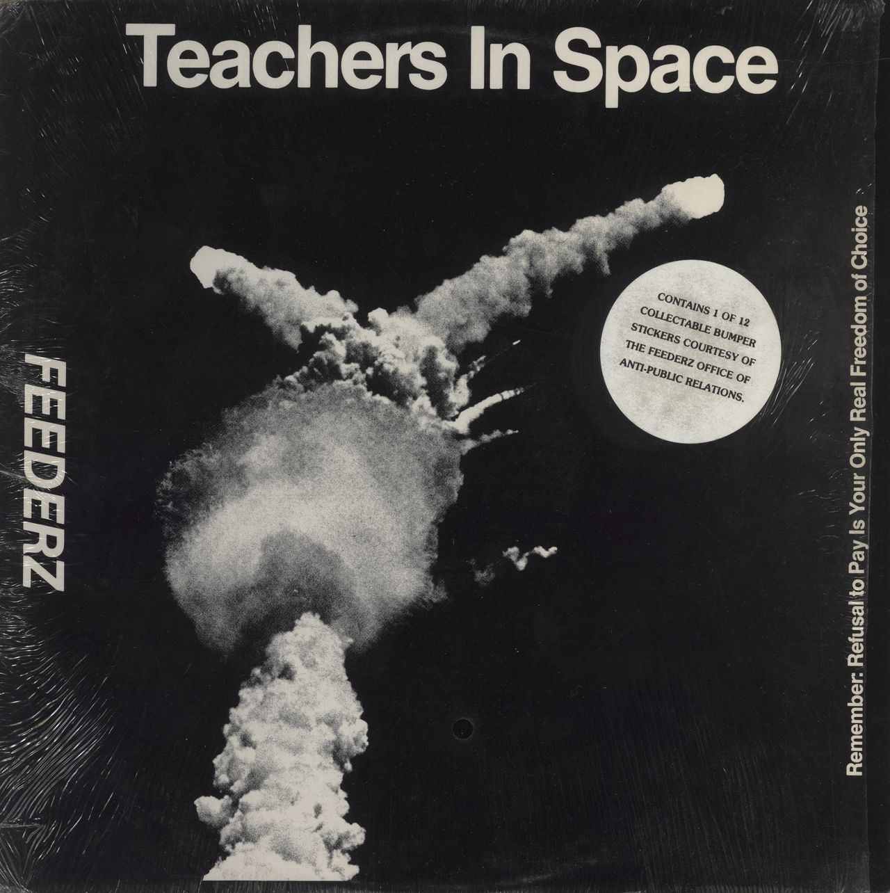 FEEDERZ Teachers In Space (1986 US 13-track vinyl LP. The second album from the politcal US hardcore punk band, featuring D.H. Peligro [Dead Kennedys] on drums. Picture sleeve with lyric insert and [one of twelve] bumper sticker. The sleeve remains in the open shrink with hype-sticker and has just a little corner/edge creasing and minor shelfwear to the exposed opening edge. The vinyl is Excellent with just a couple of cosmetic marks and few signs of play. A desirable rarity and the first copy we've seen! STEALTHIS2)