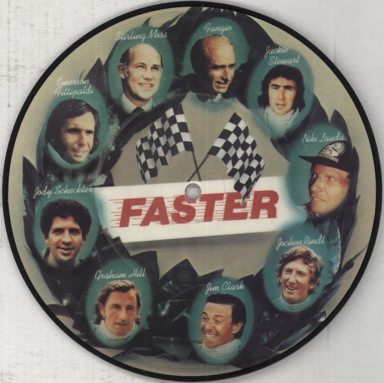 GEORGE HARRISON Faster (1979 UK limited edition 7" Picture Disc single, in aid of the Gunnar Nilsson Cancer Fund, also including Your Love Is Forever, complete with the original card picture/lyric insert & clear PVC sleeve featuring theoriginal 'benefit' sticker. The insert shows light edge wear & the disc appears barely played K17423P)