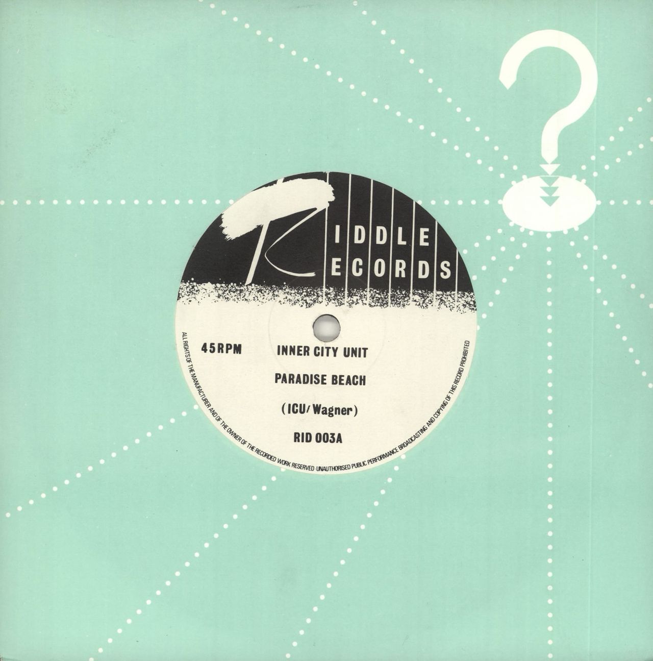 INNER CITY UNIT Paradise Beach (1979 UK 7" vinyl single also featuring Amyl Nitrate, company die cut sleeve RID003)