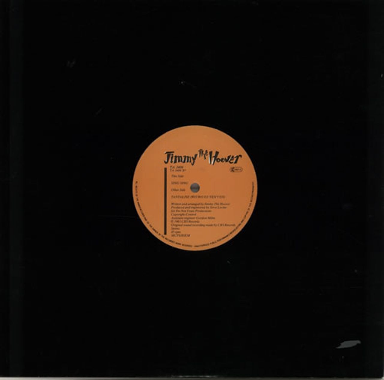 JIMMY THE HOOVER Tantalise (Wo Wo Ee Yeh Yeh) (1983 UK 12" vinyl single, also featuring Sing Sing, plain die cut sleeve TA3406)