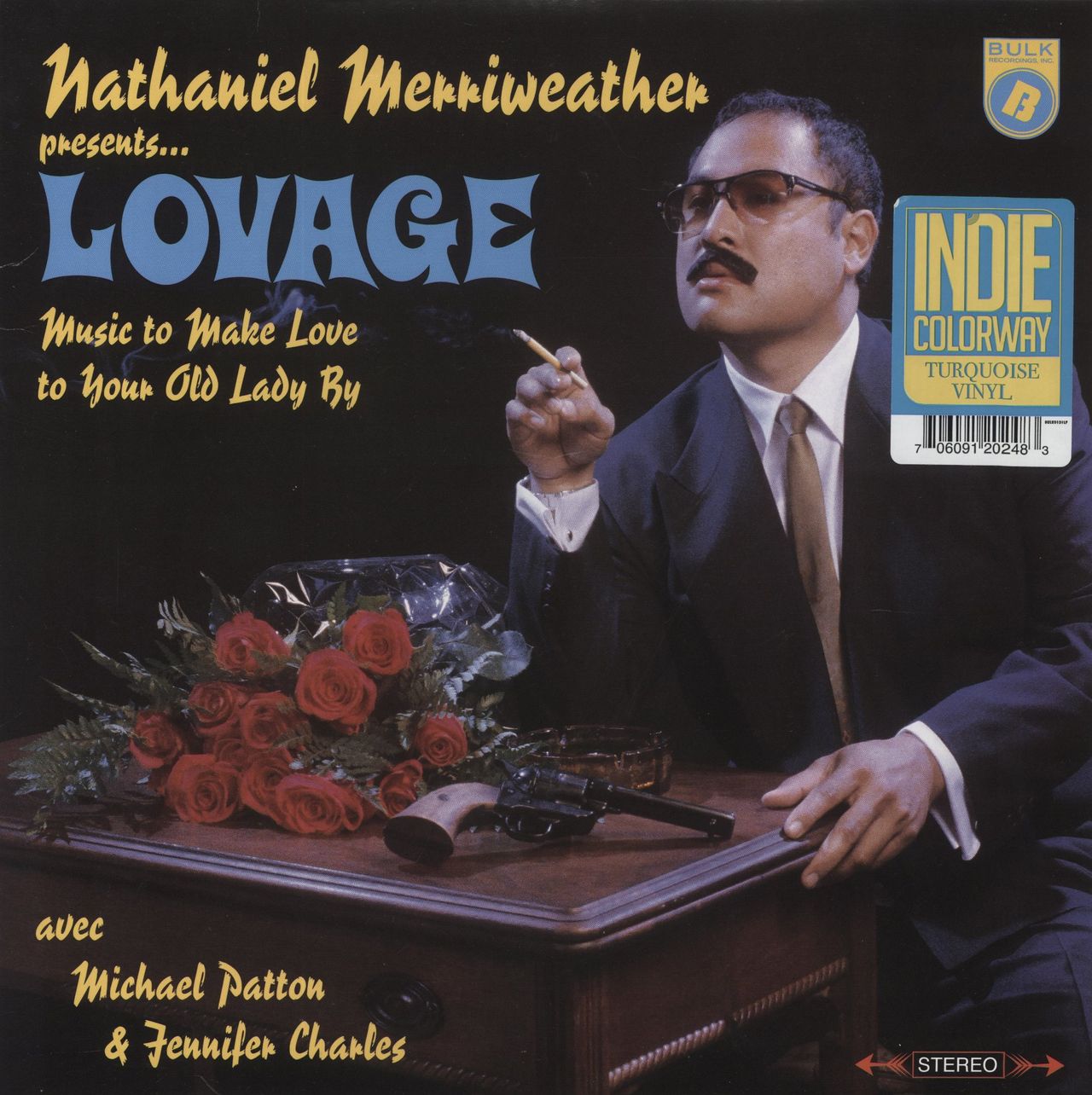NATHANIEL MERRIWEATHER PRESENTS LOVEAGE / MIKE PATTON / JENNIFER CHARLES Music To Make Love To Your Old Lady By (2022 US 16-track double LP, pressed on Turquoise Vinyl. Originally released in 2001 and reissued for Record Store Day 2022. Single pocket picture sleeve with individual lyric inners. The sleeve retains its hype-sticker and shows just a little edgewear. The vinyl remains in Near Mint condition BULK013LP)