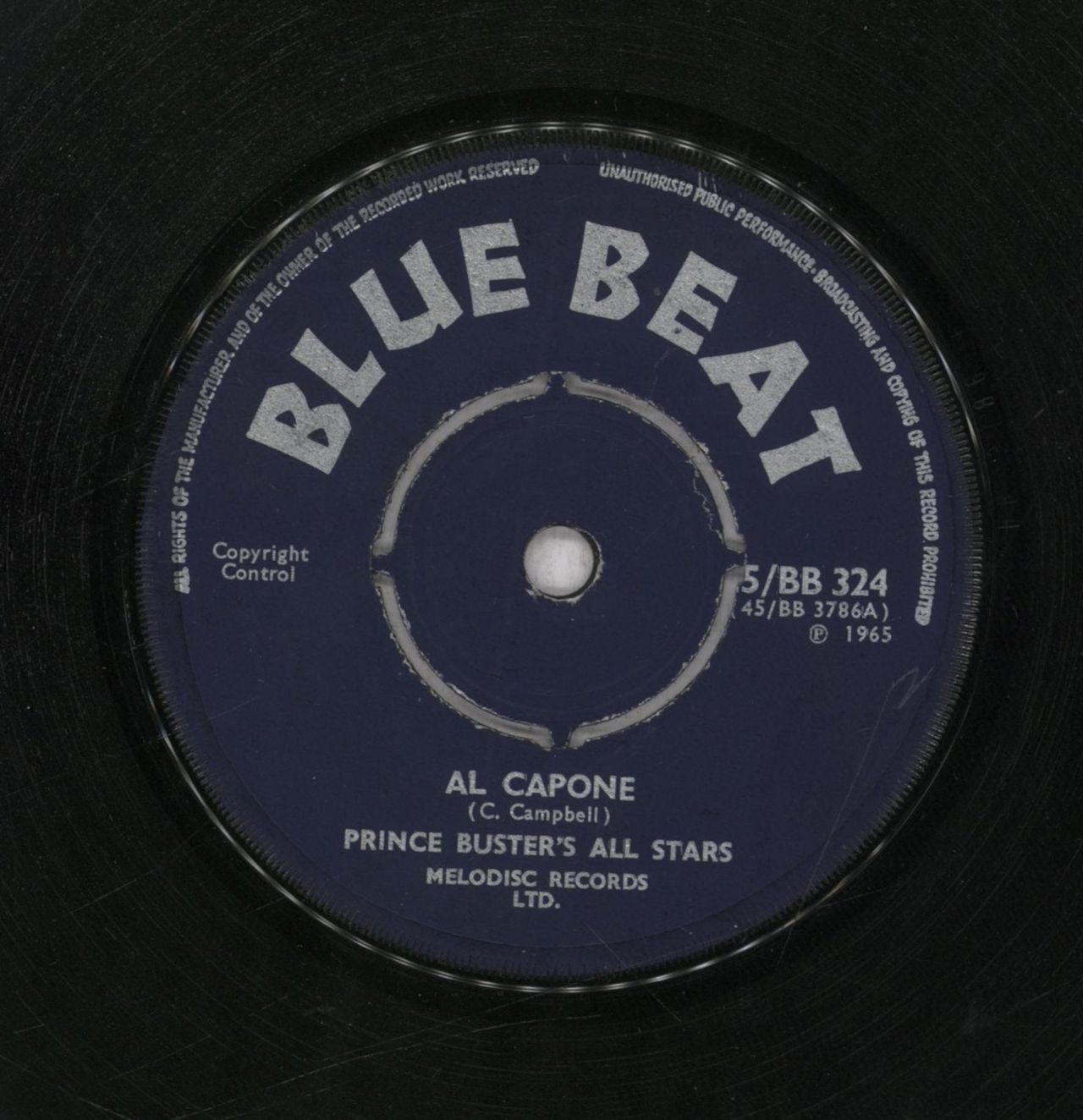 PRINCE BUSTER'S ALL STARS Al Capone (Classic 1965 UK 7" vinyl single with intact four prong centre & 'rough' textured label, also including One Step Beyond, plain company die cut paper sleeve. This copy shows some minor evidence of play 45/BB324)