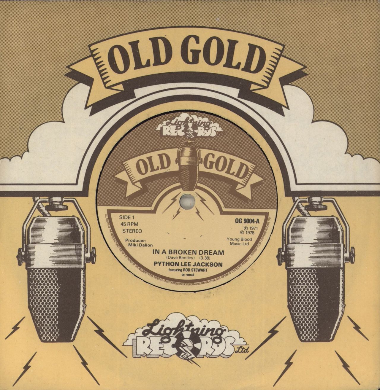 PYTHON LEE JACKSON featuring ROD STEWART In A Broken Dream (1978 UK Old Gold issue 7" vinyl single, also including If The World Stopped Tonight, housed in a die-cut series sleeve OG9004)
