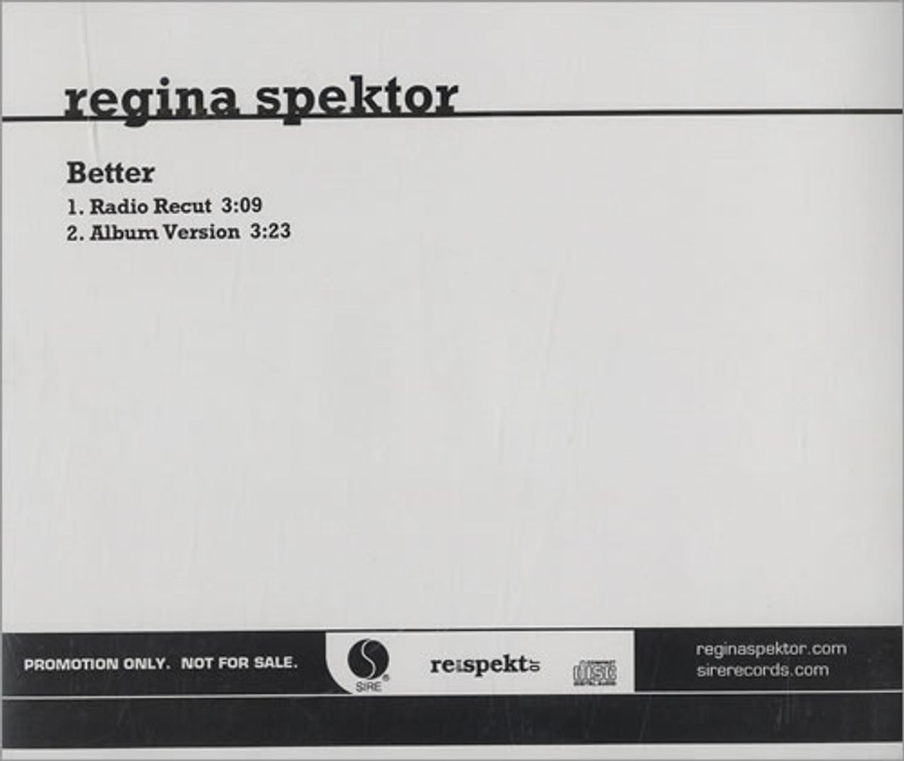 REGINA SPEKTOR Better (2007 US 2-track promotional CD taken