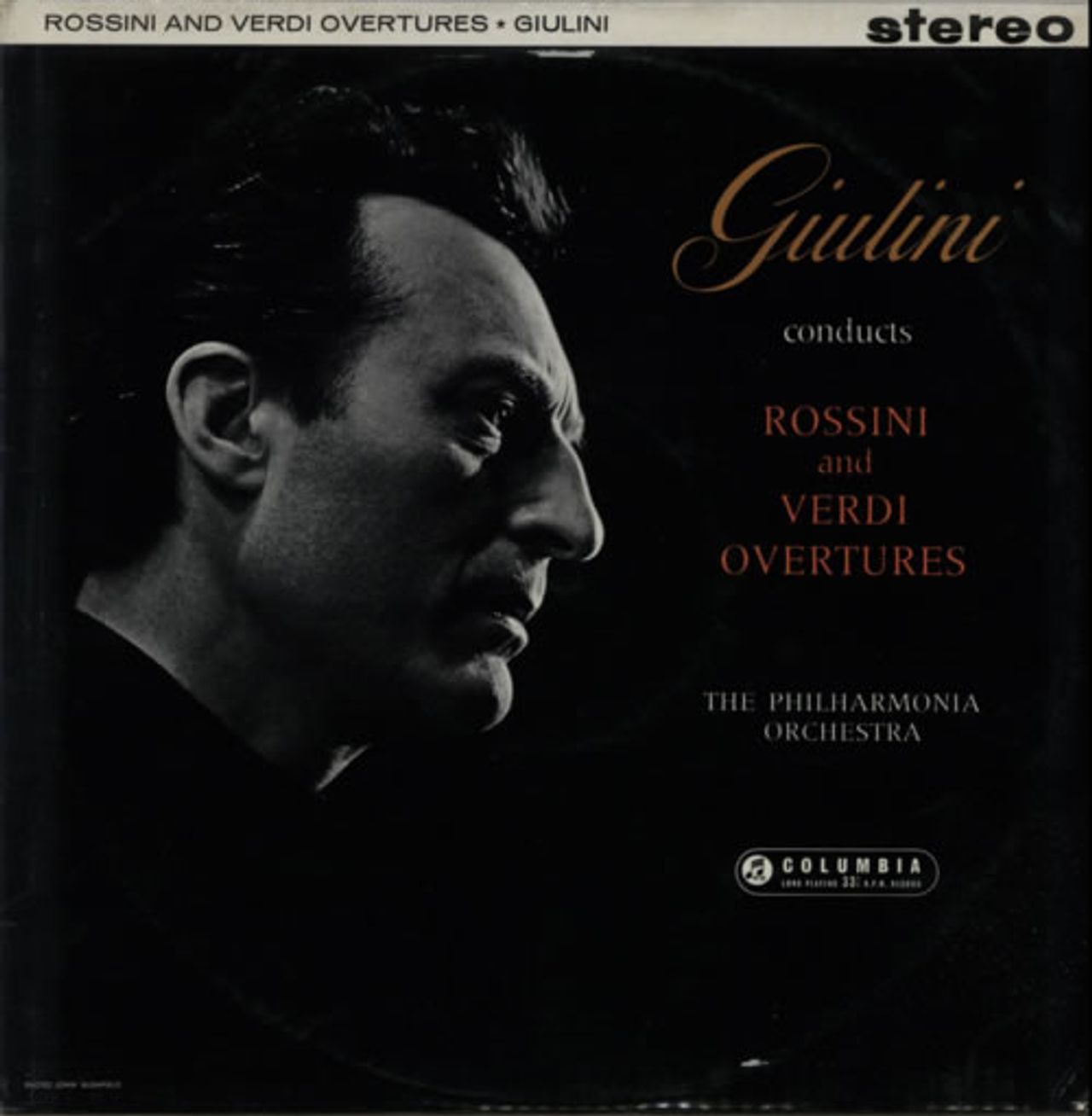 THE PHILHARMONIA ORCHESTRA conducted by CARLO MARIA GIULINI Rossini And Verdi Overtures (1961 UK first issue STEREO LP on silver rimmer turquoise Columbia label, front laminated flipback picture sleeve. The sleeve shows just a little light shelfwear & the vinyl remains near 'as new' with few signs of play SAX2377)
