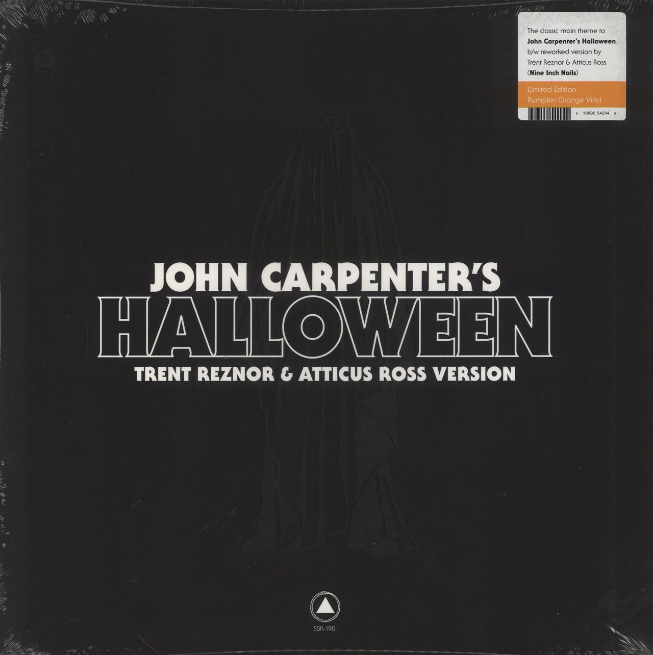 TRENT REZNOR John Carpenter's Halloween (Rare 2018 UK/US limited edition 12" single pressed on Orange Vinyl. This version features the incorrect & mispressed Trent Reznor & Atticus Ross Version, pressed using the wrong and previous released mix of the song. The B-Side features the original John Carpenter version. Housed in a spot lacquered picture sleeve with hype sticker attached, and includes a printed copy of the original email sent to customers regarding the error. Sealed in the hype-stickered shrink SBR-190)