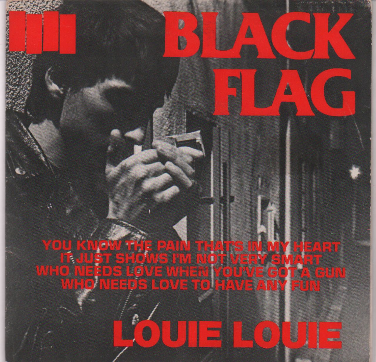 BLACK FLAG Louie Louie (1981 US first issue 7" vinyl single on the silver Posh Boy label with the small pressing ring indicating a first pressing, also including Damaged 1, within the card picture sleeve. The sleeve displays only a little lightgeneral wear whilst the vinyl shows only light signs of play, overall an excellent example PBS13)