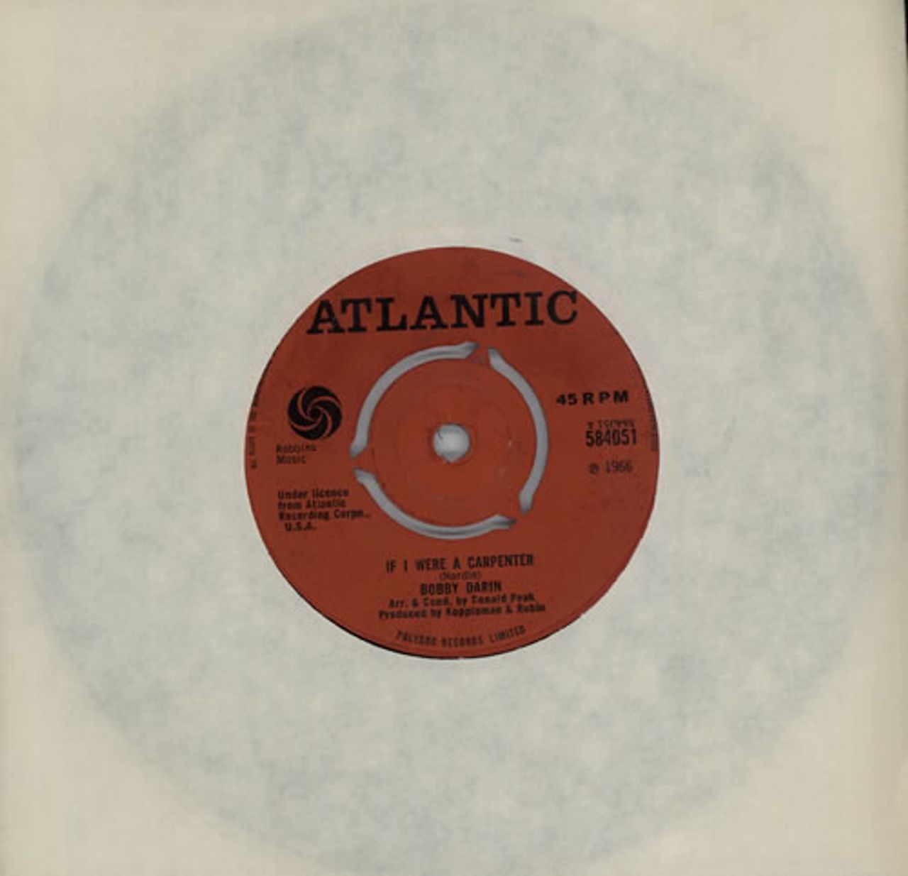 BOBBY DARIN If I Were A Carpenter (1966 UK 7" vinyl single with intact three prong centre, also featuring Rainin', plain company die cut paper sleeve)