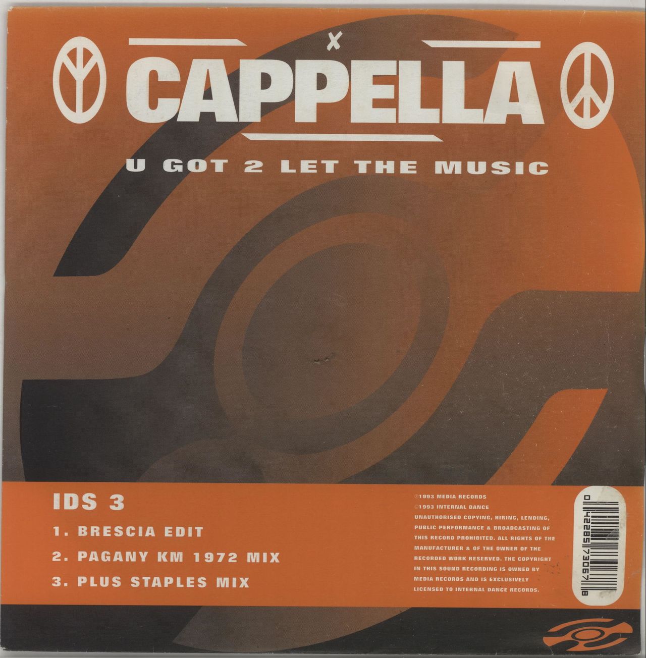 CAPPELLA U Got 2 Let The Music (1993 UK 3-track 7" vinyl single featuring the Brescia Edit, Pagany KM 1972 Mix and Plus Staples Mix of the title track, picture sleeve IDS3)