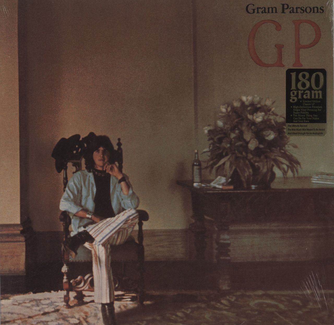 GRAM PARSONS GP (2007 US exclusive limited edition 11-track LP pressed on High Definition Premium 180gm Virgin Vinyl, originally released in 1973 by the former Byrds member, also featuring Elvis Presley's backing band & Emmylou Harris, gatefold picture sleeve. This copy remains factory sealed from new)