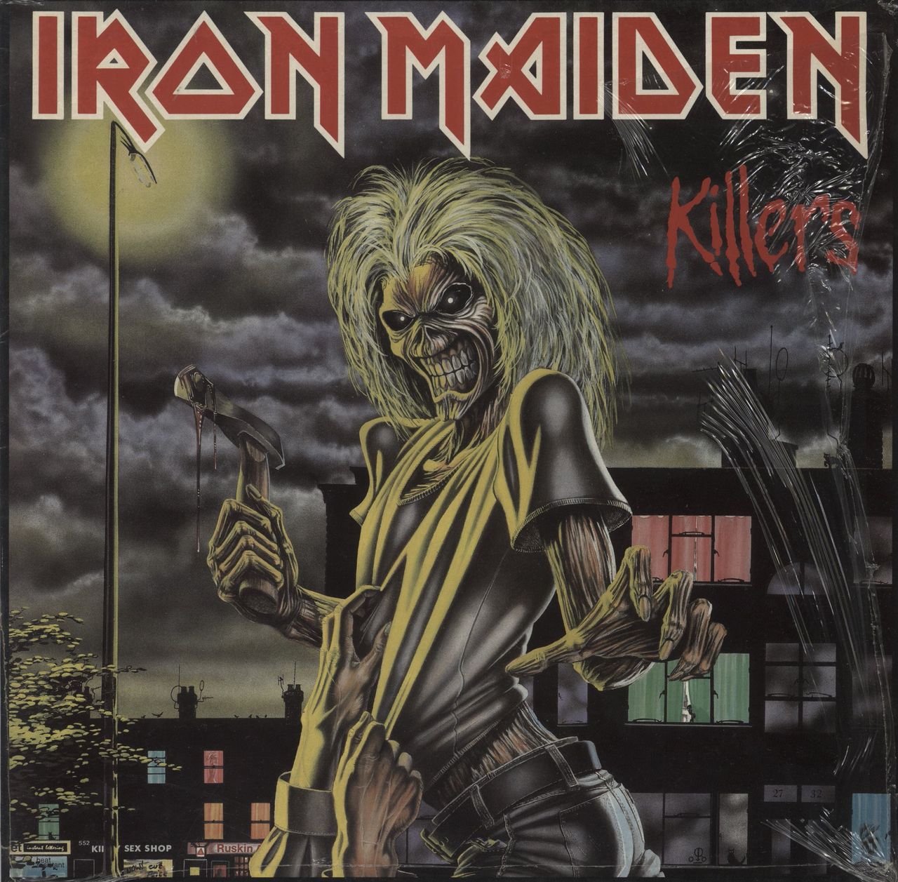 IRON MAIDEN Killers (Original 1981 UK 10-track LP with A1/B1 matrices and 'Eddie' picture labels. The second album from the NWOBHM group and their first to feature Adrian Smith and the last with vocalist Paul Di'anno, includes the classic tracks Wrathchild, Killers and Prodigal Son, housed in a glossy picture sleeve with the classic Derek Riggs illustration. The sleeve, which is still in its open shrinkwrap has just a little wear to the top and bottom right corners, otherwise protected by the shrink, and the vinyl remains in a Near Mint condition. A really nice own previous owner copy EMC3357)