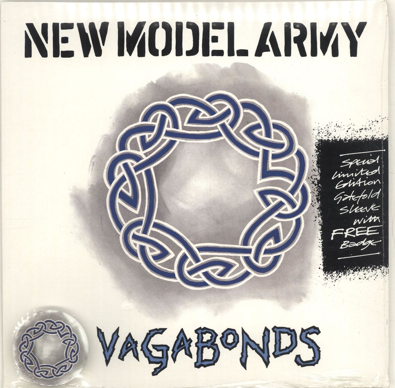 NEW MODEL ARMY Vagabonds (1989 UK limited edition 7" vinyl single, also including Deadeye. The vinyl is UNPLAYED housed in the gatefold picture sleeve which remains sealed within its original hype-stickered shrinkwrap complete with thebonus badge! NMAG8)