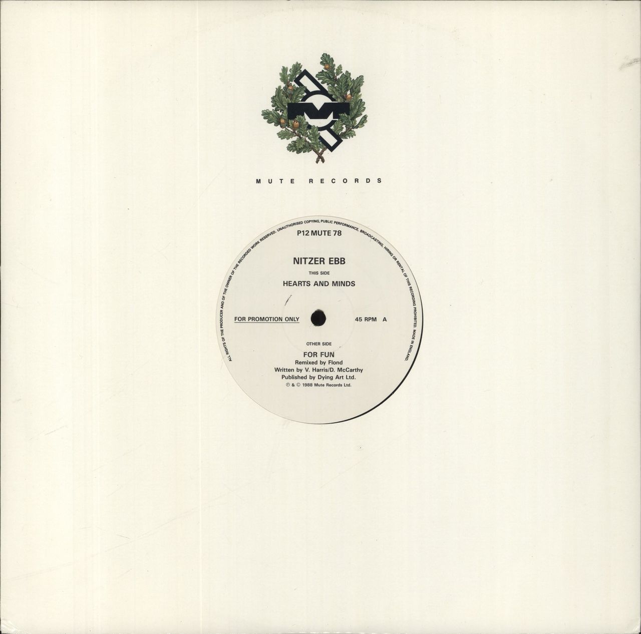 NITZER EBB Hearts & Minds (Rare 1988 UK promotional white label 12" vinyl single with 'For Fun' on the reverse, presented in die-cut Mute Records sleeve P12MUTE78)