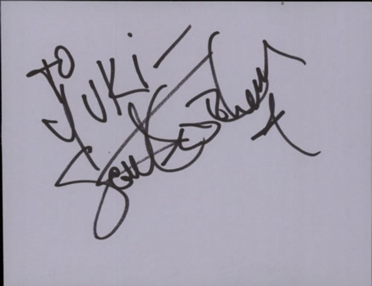 Signatures were obtained by Yuki Smythe-Park. For many years Yuki's husband Colin, was Eric Clapton's assistant tour manager, working on many of his 1980s concerts & tours. On August 26th 1990, Clapton played the Alpine Valley Music Theatre, Wisconsin, alongside Stevie Ray Vaughan & Double Trouble, Robert Cray and Buddy Guy. Following the show Colin Smythe, along with Clapton's agent Bobby Brooks, his bodyguard Nigel Browne and Stevie Ray Vaughan boarded a helicopter bound for Chicago. Tragically, the helicopter crashed shortly after take-off, killing all on board. Yuki was friends with many artists from that era and continued to attend gigs and fill her numerous autograph books. This signature was obtained in person by Yuki.