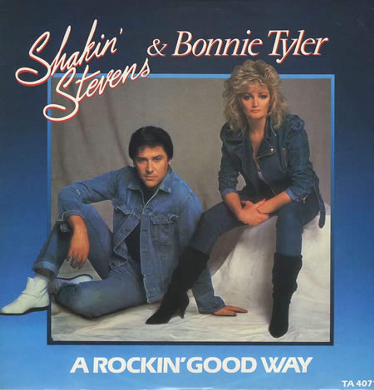 SHAKIN' STEVENS & BONNIE TYLER A Rockin Good Way (1983 UK 3-track 12" vinyl single, also includes live recordings of 'Why Do You Treat Me This Way' & 'The Bop Won't Stop', picture sleeve TA4071)