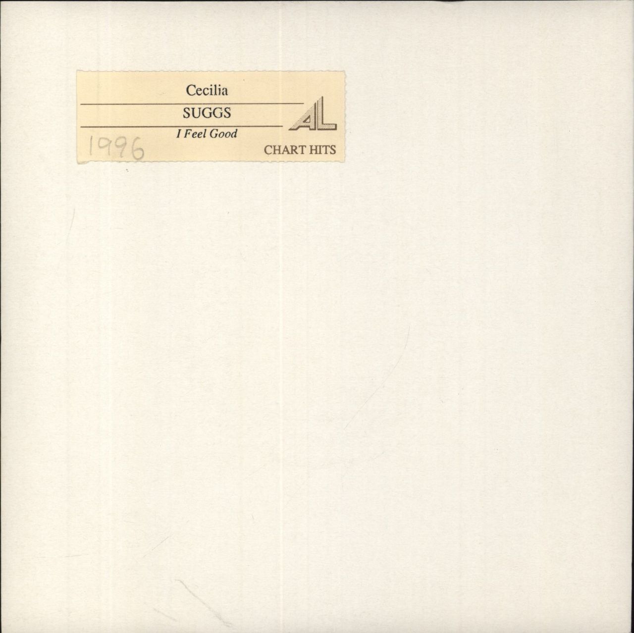 SUGGS Cecilia (1996 UK wide centre vinyl 7" for the single release, pressed exclusively for jukebox use with black injection labels, featuring the Speeded Up Version, also including I Feel Good, plain card sleeve with the original jukebox selection card tab attached to the front. The vinyl remains in Excellent condition with only a few light signs of play on both sides)