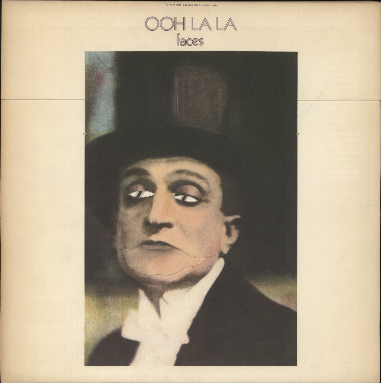 THE FACES Ooh La La (1973 UK first issue 10-track green/picture label LP, housed in a US printed fold-out die-cut sleeve with moving eyes & mouth, complete with the limited edition lyric poster. The sleeve is in beautiful clean condition withminimal signs of age, the poster remains unused and the vinyl looks barely played. The only notable bit of wear is a small patch of paper loss to the picture side of the label, likely caused by a duplicate label removal. Otherwise this is a stunning copy K56011)