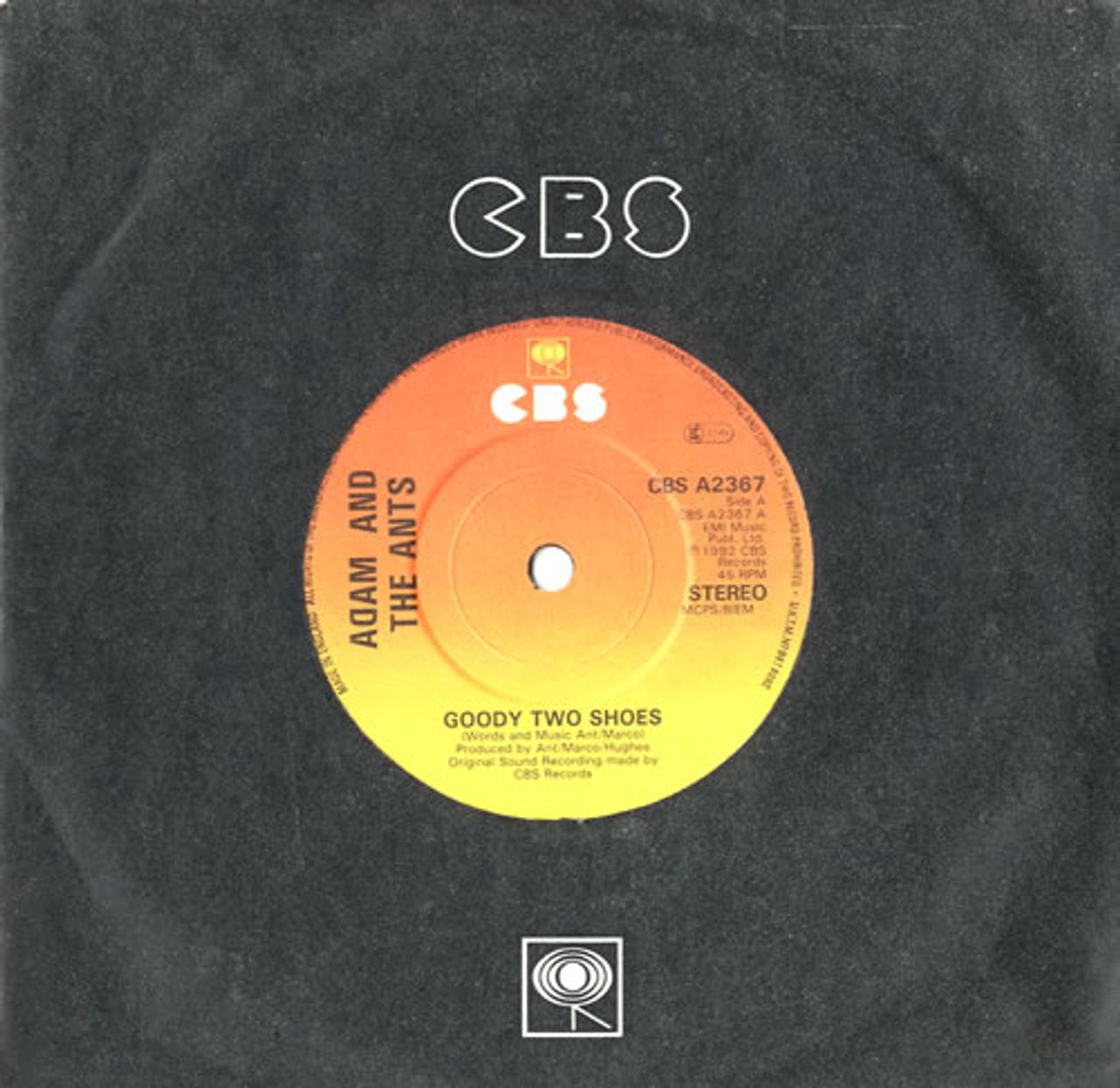 ADAM & THE ANTS Goody Two Shoes (1982 UK solid centre 7" vinyl single, also featuring Red Scab, die-cut CBS company paper sleeve CBSA2367)
