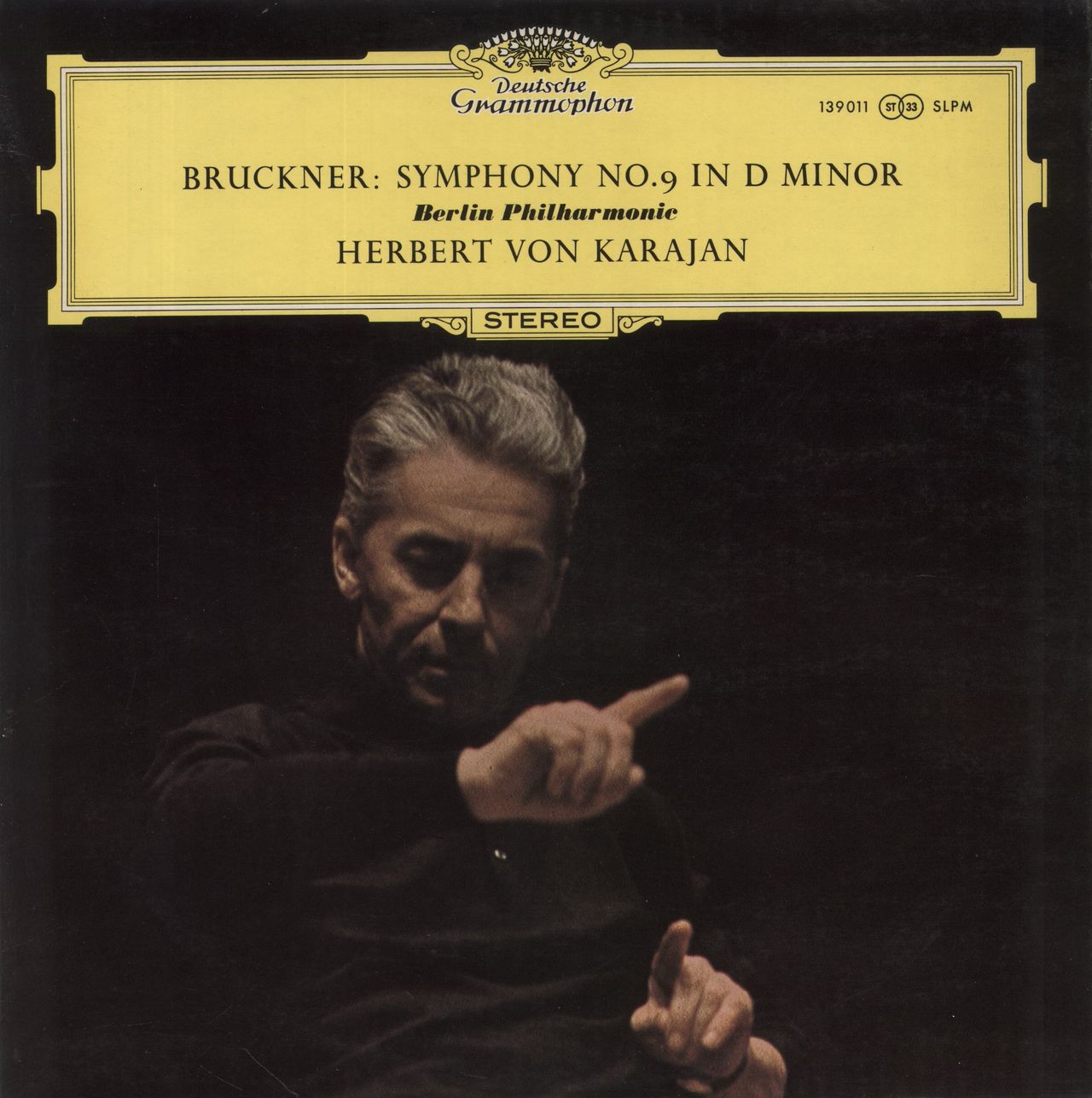 HERBERT VON KARAJAN conducts the BERLIN PHILARMONIC Bruckner: Symphonie Nr. 9 D-moll (1976 UK 4-track stereo vinyl LP, fully laminated picture sleeve. The sleeve shows light wear and the vinyl appears barely played)