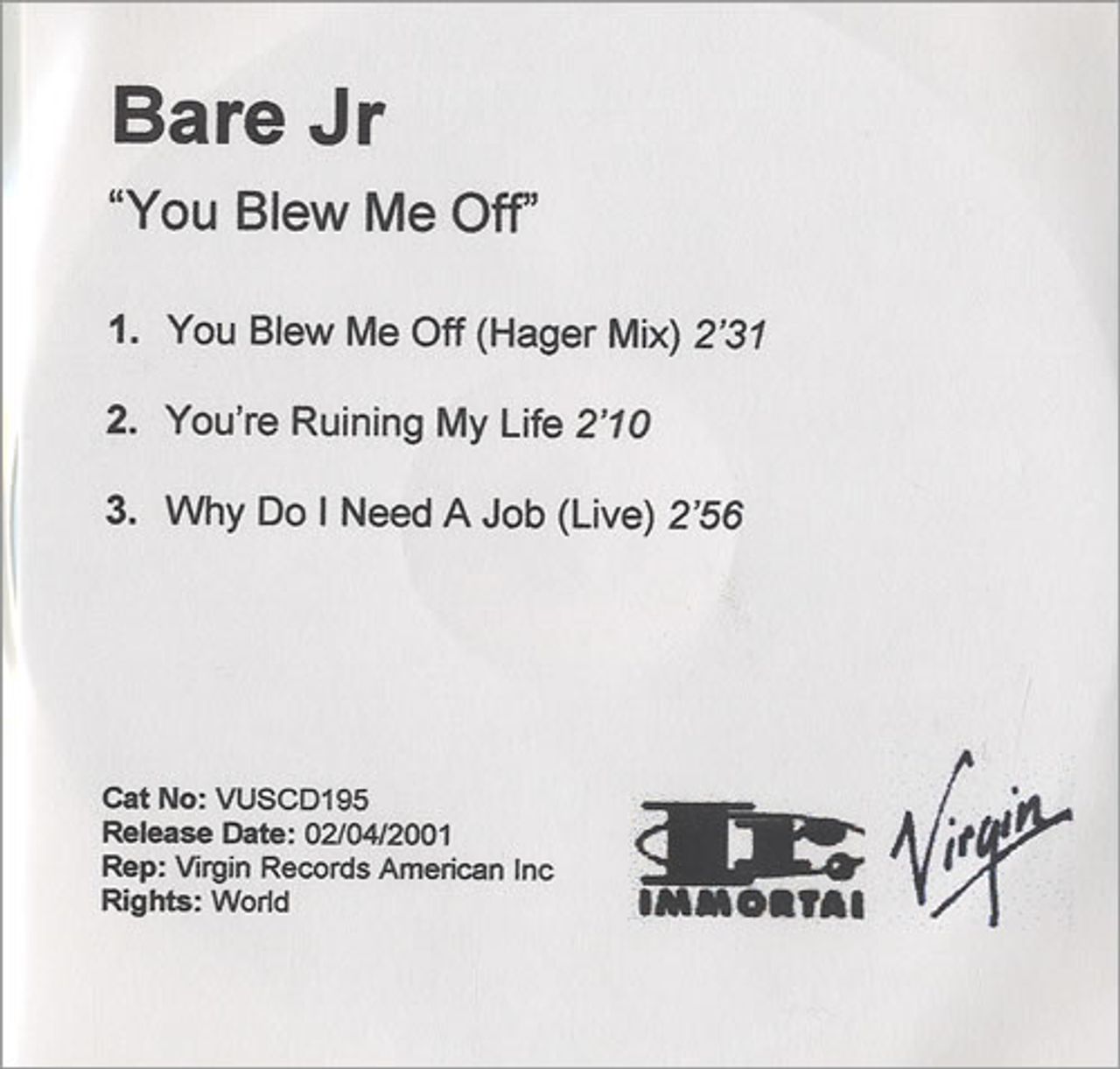 BARE JR. You Blew Me Off (2001 UK 3-track promotional CD-R