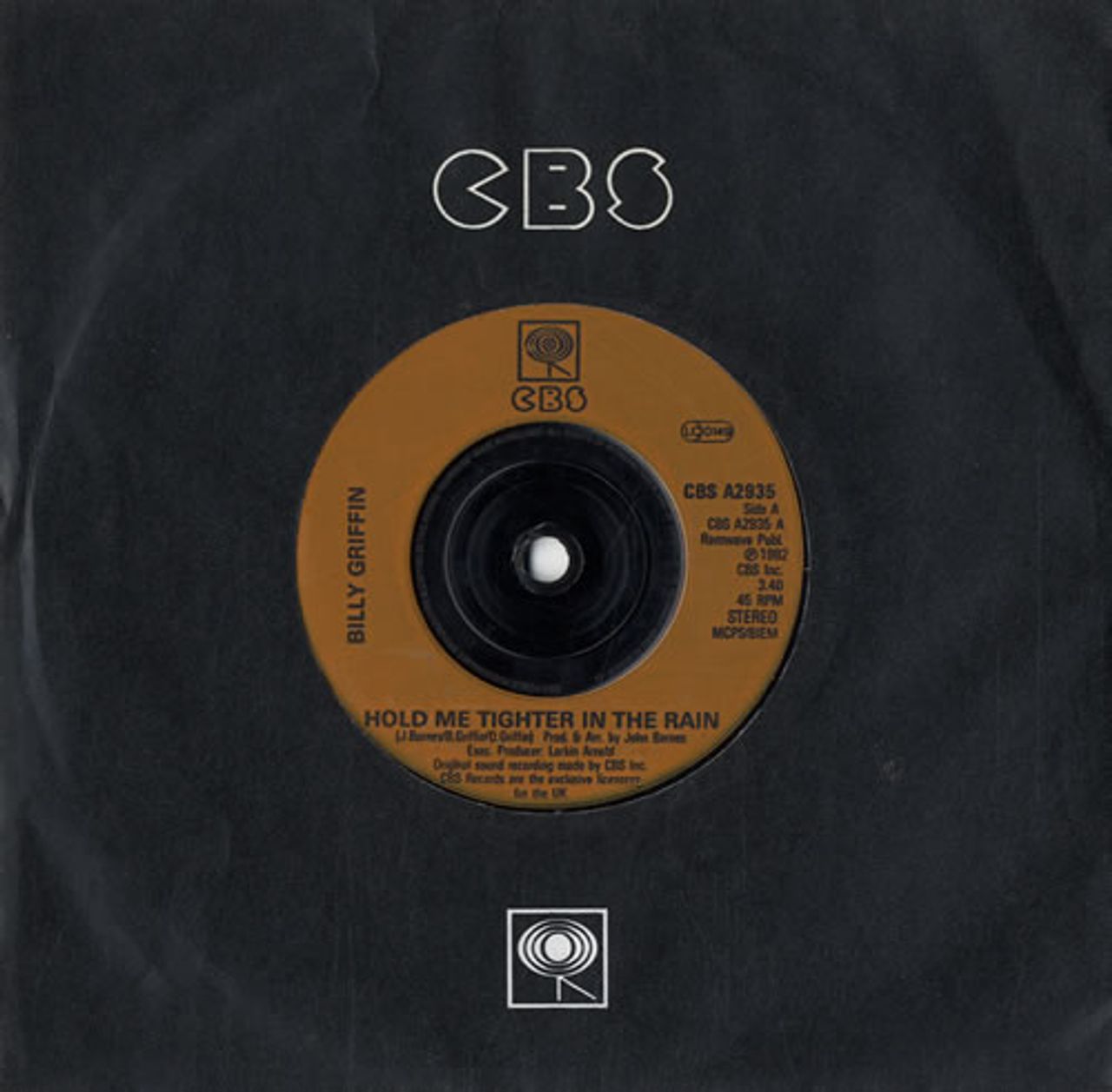 BILLY GRIFFIN Hold Me Tighter In The Rain (1982 UK CBS injection moulded label vinyl 7" single, also including Understand, housed in a CBS company die-cut paper sleeve A2935)