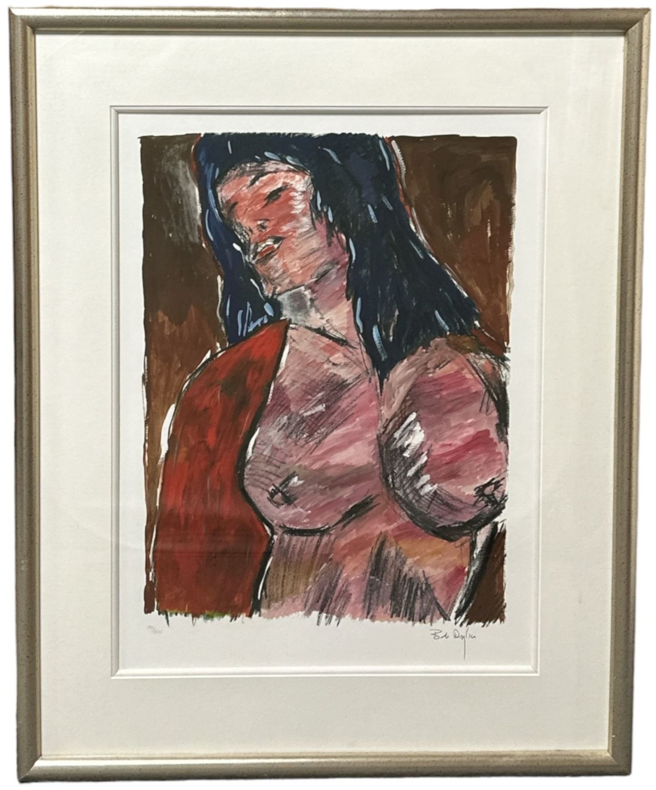 BOB DYLAN Cassandra (Rare official Autographed 2008 UK numbered limited edition artwork print. This striking image is one of a series of limited edition prints released in 2008 as part of the 'Drawn Blank' series and marked Dylan's first venture into fine art publishing. Each print is beautifully rendered using the giclée method of printing on Hahnemüle Museum Etching paper and is hand-signed by Bob Dylan in the bottom right-hand corner in pencil. The print image measures 15.8" x 21.8", attractively mounted in a silver frame measuring 33" x 27" and numbered 190/295. With originals of Dylan's artwork fetching vast sums, recent years have seen limited edition numbered prints such as these soar in value and offer any prospective purchaser not just a superb work of art but also an investment grade opportunity...!)
