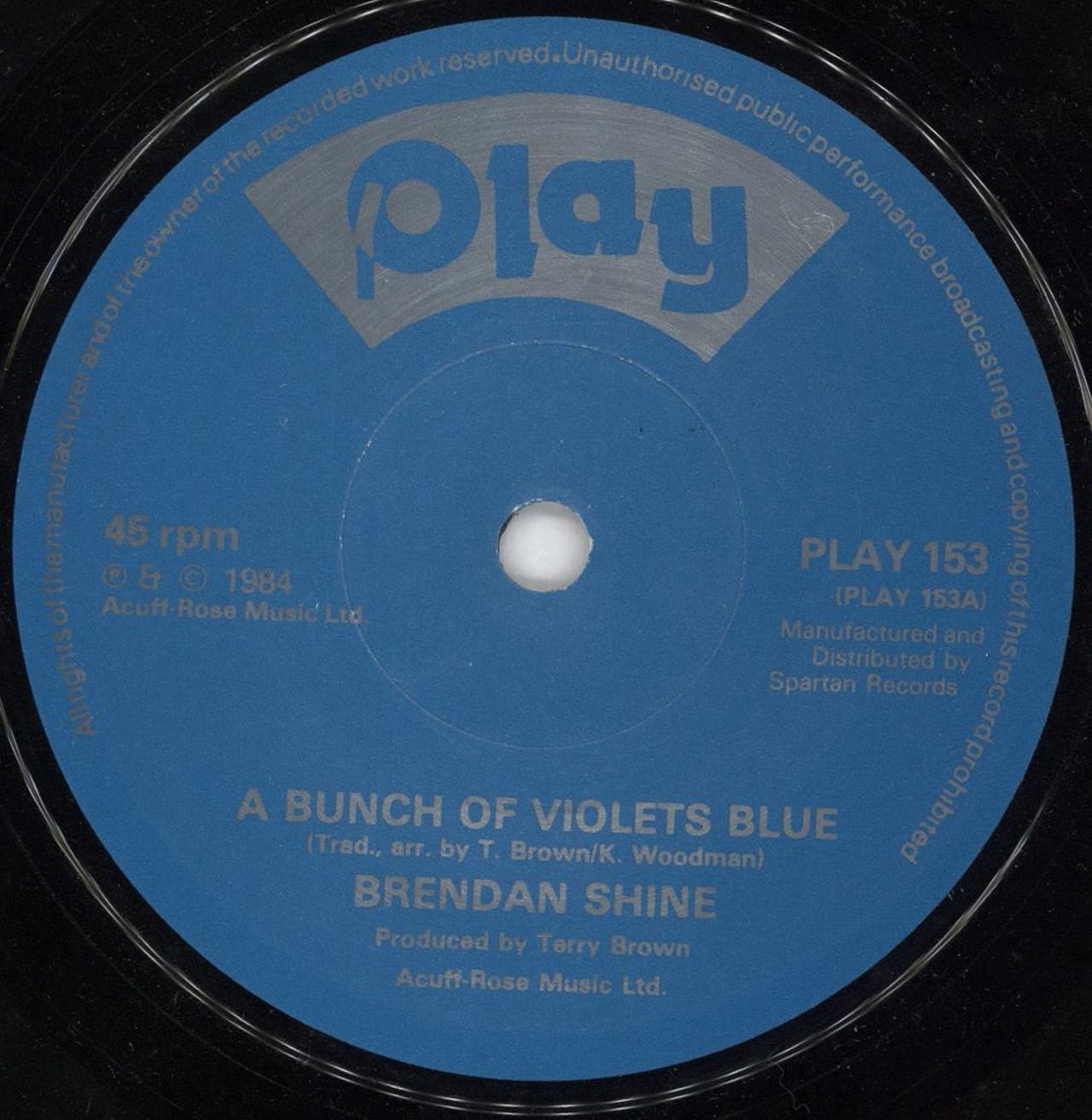BRENDAN SHINE A Bunch Of Violets Blue (1984 UK solid centre 7" vinyl single, also including The Diddling Song, plain die cut paper sleeve PLAY153)