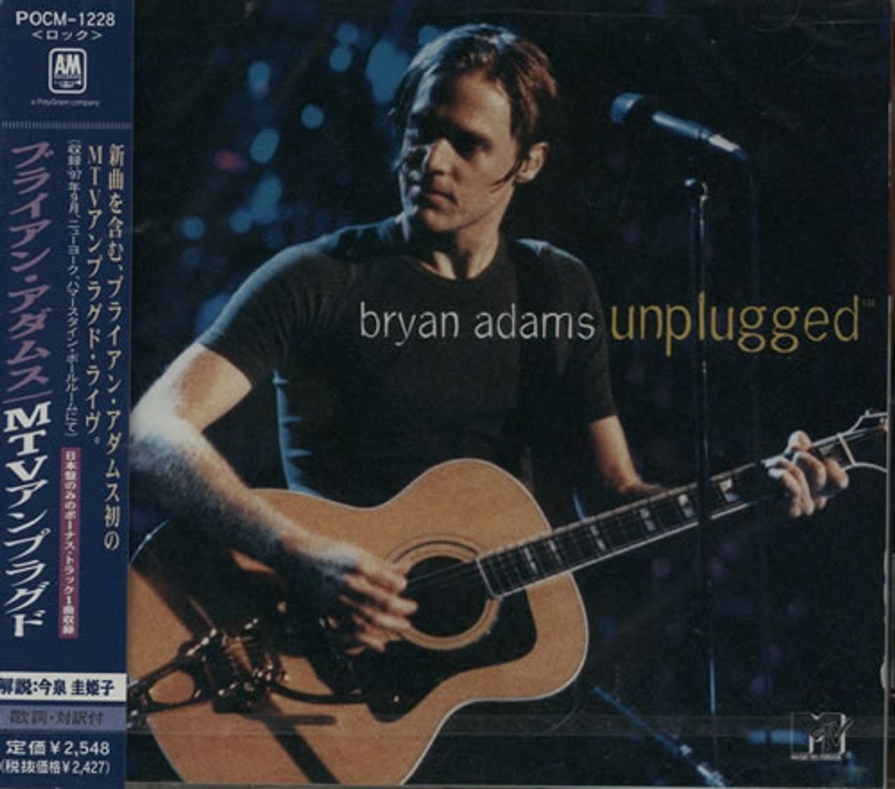 BRYAN ADAMS MTV Unplugged (1997 Japanese 10-track promotional sample CD album issued to radio stations and reviewers ahead of the actual release date, featuring recordings from his live & unplugged performance for MTV at the Hammerstein Ballroom in New York City on 26th September 1997. Custom stamped inner rim on the disc and promo stickered back insert, complete with picture sleeve, Japanese lyric insert & obi-strip POCM-1228)