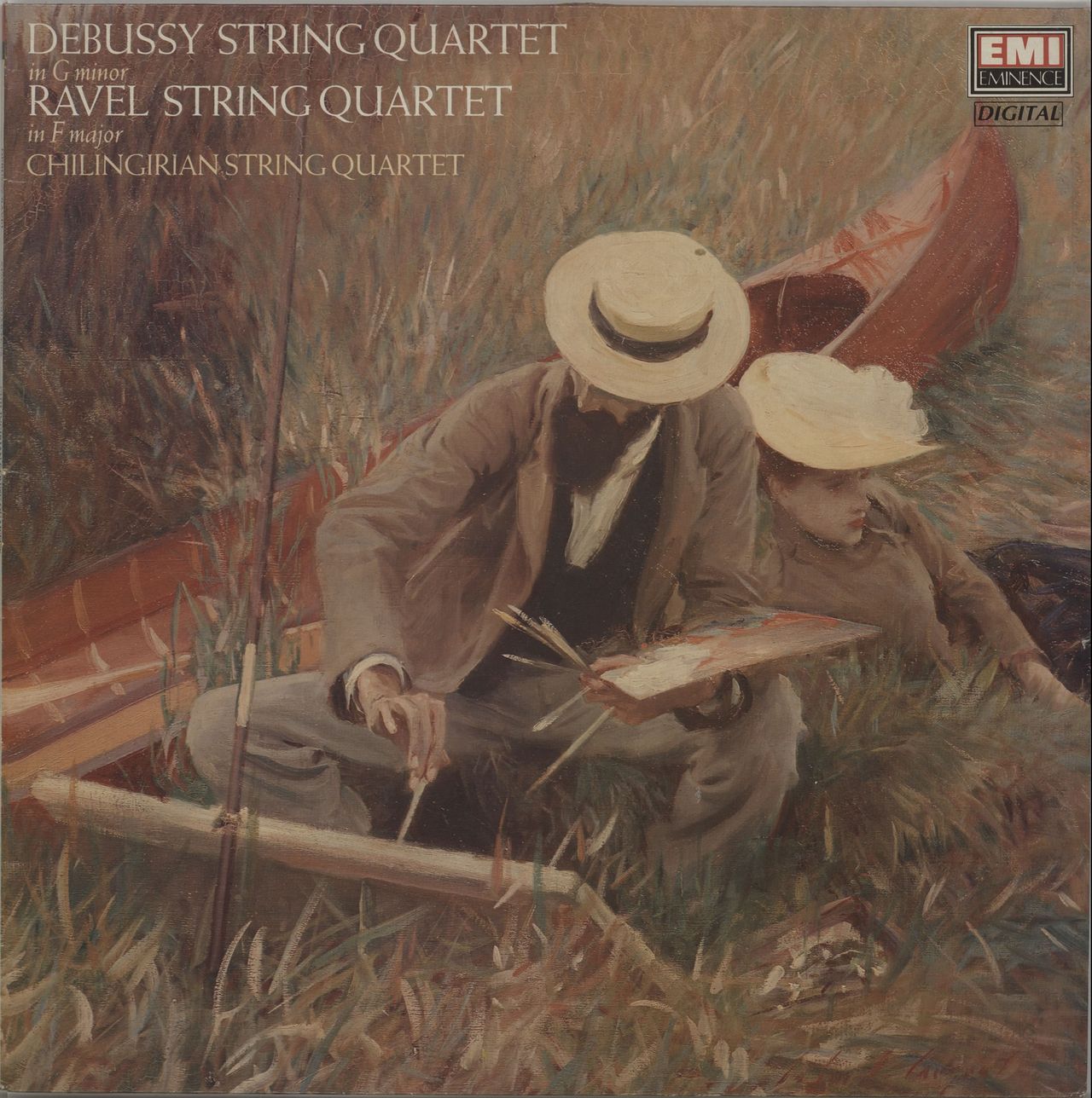 CHILINGIRIAN STRING QUARTET Debussy: String Quartet in G Minor / Ravel: String Quartet in F Major (1984 UK digitally recorded stereo LP, housed in a nice glossy picture sleeve with extensive album notes. The sleeve shows just a little light shelfwear & the vinyl is near mint EMX4120481)