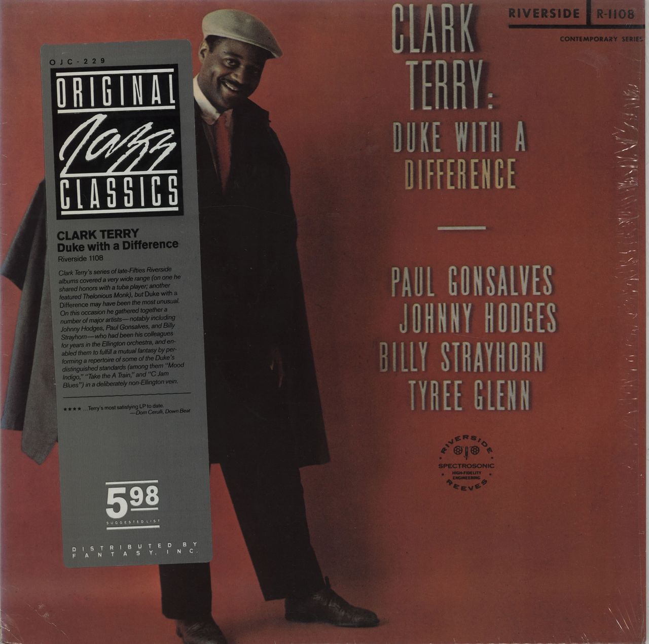 CLARK TERRY Duke With A Difference (1986 US issue of the 1957 8-track stereo LP, also starring Johnny Hodges, Paul Gonsalves, Billy Strayhorn & more. The picture sleeve has a light corner crease & is otherwise still in the hype stickered open shrinkwrap whilst the vinyl is Excellent & appears barely played OJC-229)