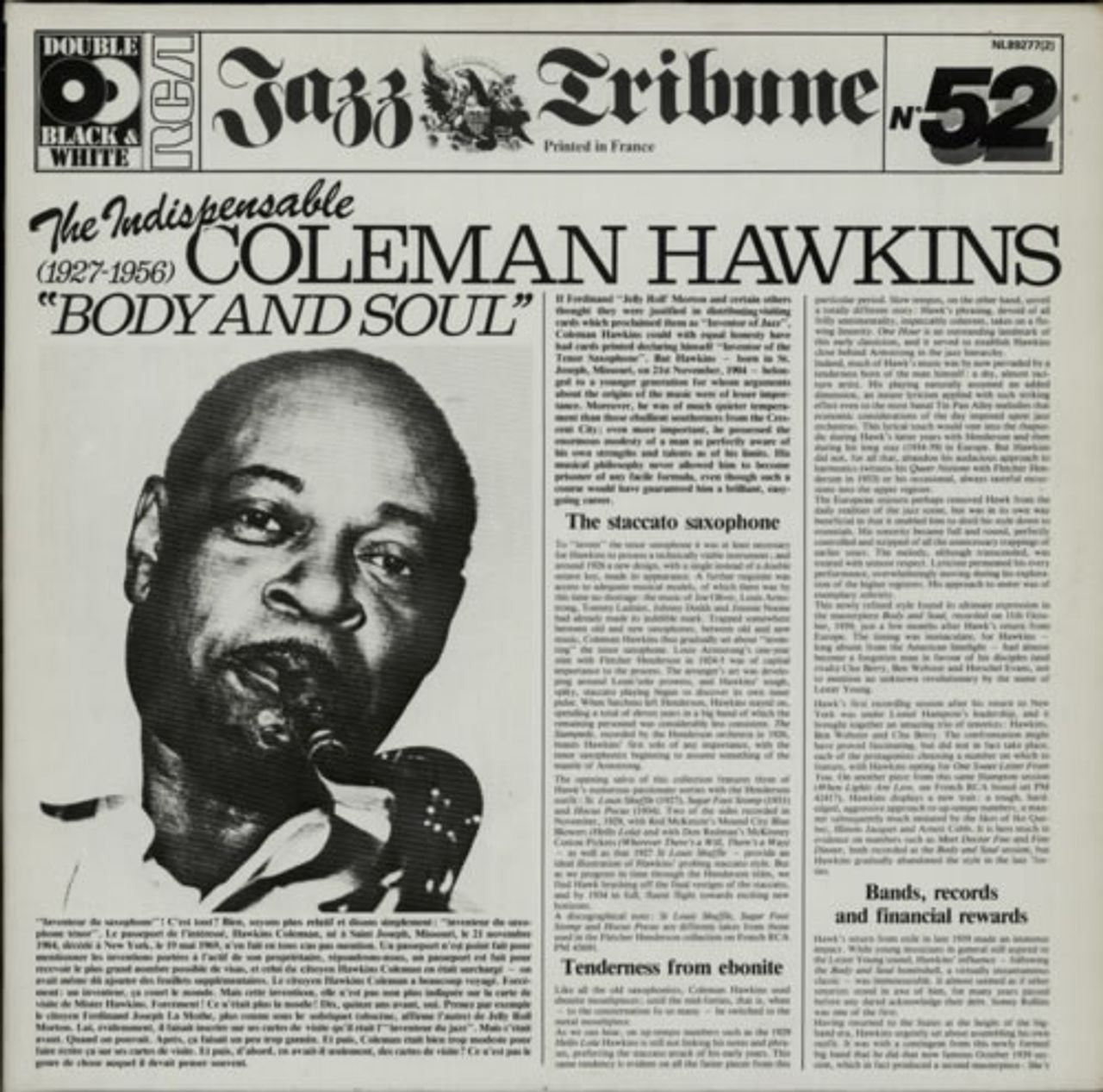 COLEMAN HAWKINS The Indispensable Coleman Hawkins - 1927-1956 (1984 French 32-track double LP compilation, of classic Hawk recordings that you can't go wrong with, housed in a gatefold picture sleeve with extensive session & liner notes. The cover shows a little scuffing & the vinyl grades EX/EX- with minor cosmetic wear not affecting play NL89277(2))