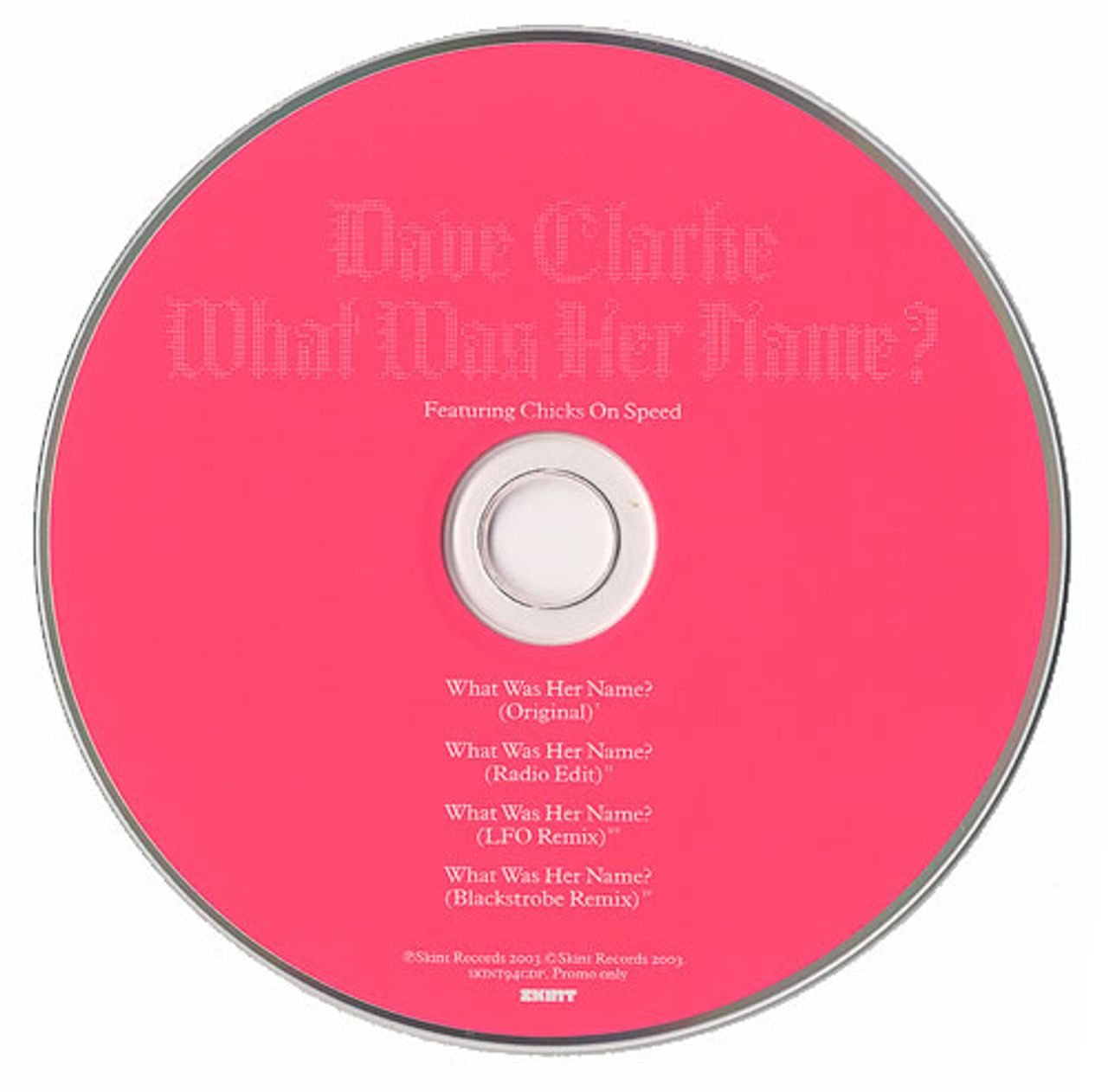 DAVE CLARKE What Was Her Name? (2003 UK 4-track promotional CD featuring the single release from Dave's brilliant Devil's Advocate album. Includes the Original Version, Radio Edit, LFO Remix and Blackstrobe Remix. Custom pink disc housed in a clear PVC wallet)