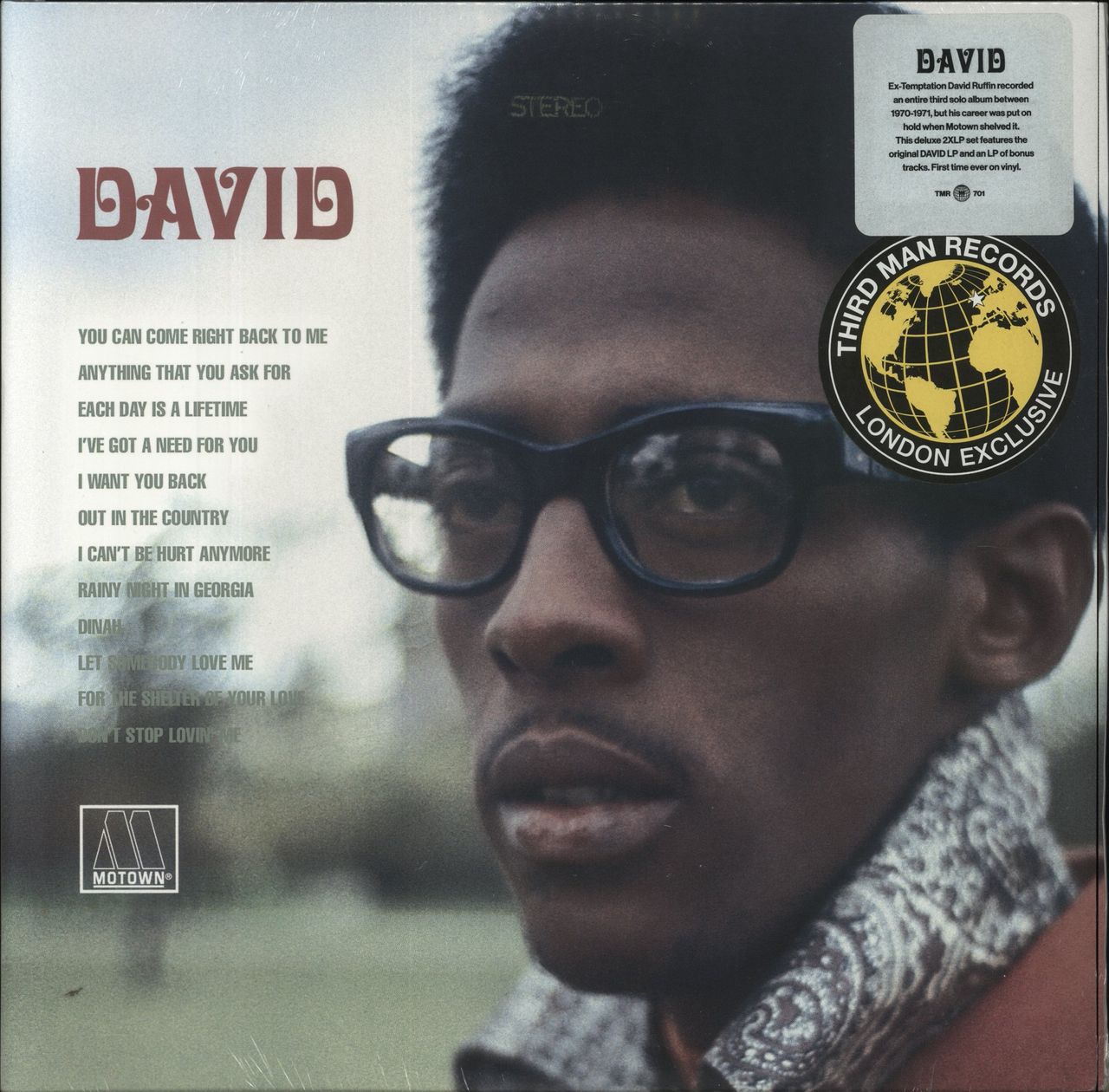 DAVID RUFFIN David (2021 UK 23-track double LP, pressed on Yellow Vinyl. Originally released in 2004 but recorded between 1970-1971 when it was shelved by Motown. Includes the original LP and a bonus LP featuring mono single mixes. First time ever on vinyl! Gatefold picture sleeve. Sealed and unplayed within the hype-stickered shrink TMR-701)