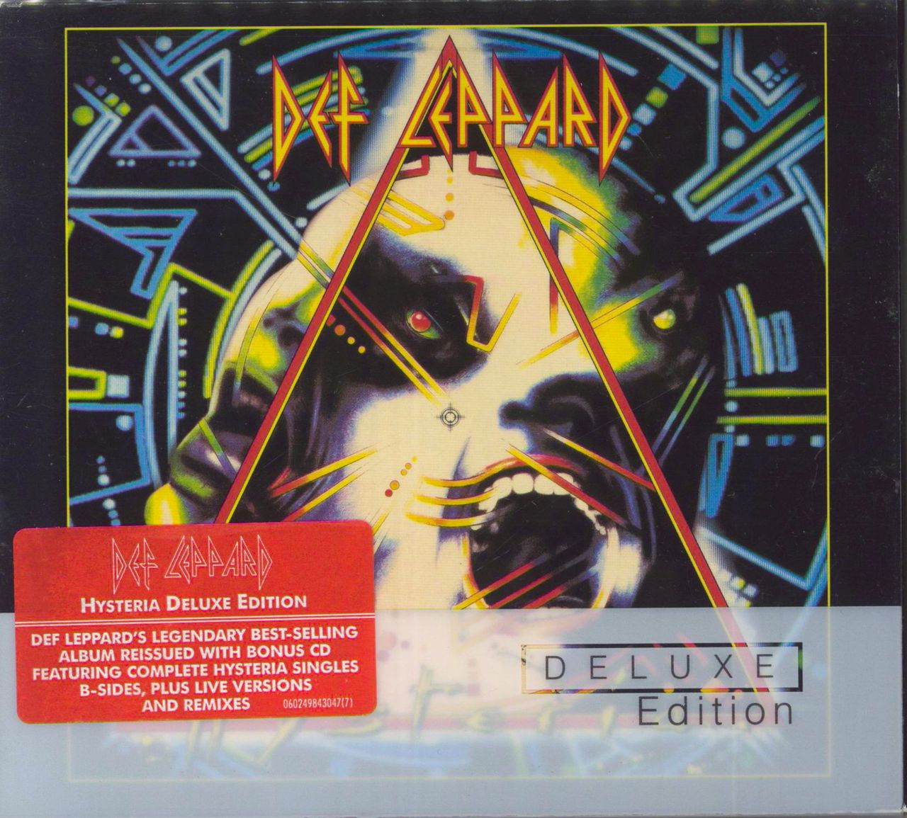 DEF LEPPARD Hysteria (2006 issue UK 'Deluxe Edition' 2-CD set comprised of 16-track digitally remastered CD album [originally released in 1987] which catapulted the band into the stratosphere and became simply one of the biggest rock albums ofall time plus Bonus 11-track CD featuring a host of extras including all the 'Hysteria' single b-sides, live b-sides and remixes together for the first time, complete with extensive sleevenotes and photos, housed in a fold-out digipaksleeve with plastic slipcase which has a deletion mark through the barcode)