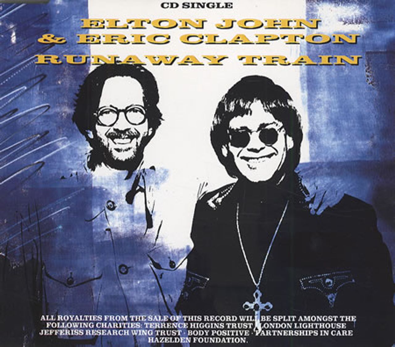 ELTON JOHN & ERIC CLAPTON Runaway Train (1992 UK 3-track CD single - taken from 'The One' album, including Understanding Women & Made For Me, picture sleeve EJSCD29)