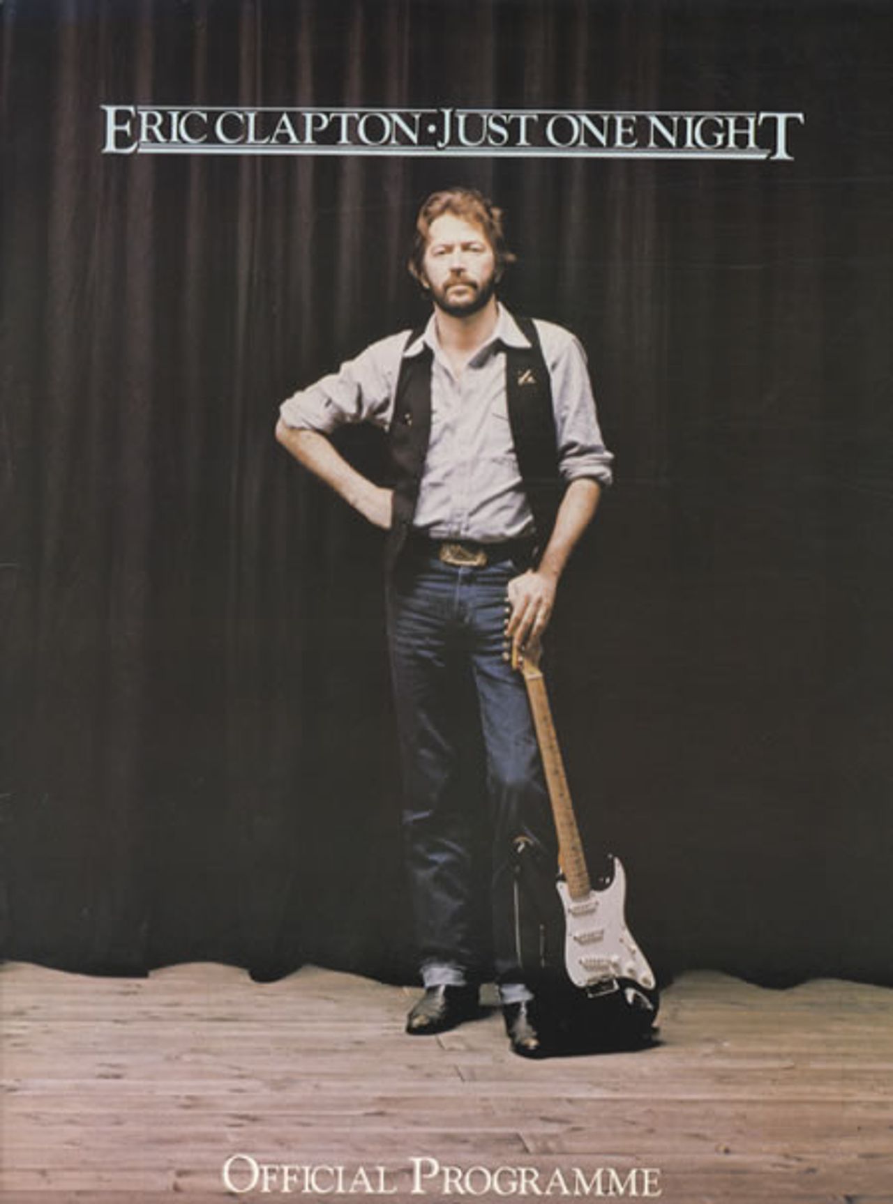 ERIC CLAPTON Just One Night (Scarce 1980 UK Twenty page official full colour tour programme featuring tour dates, discography, biography details & pictures of each band member & support Chas And Dave, great picture cover)