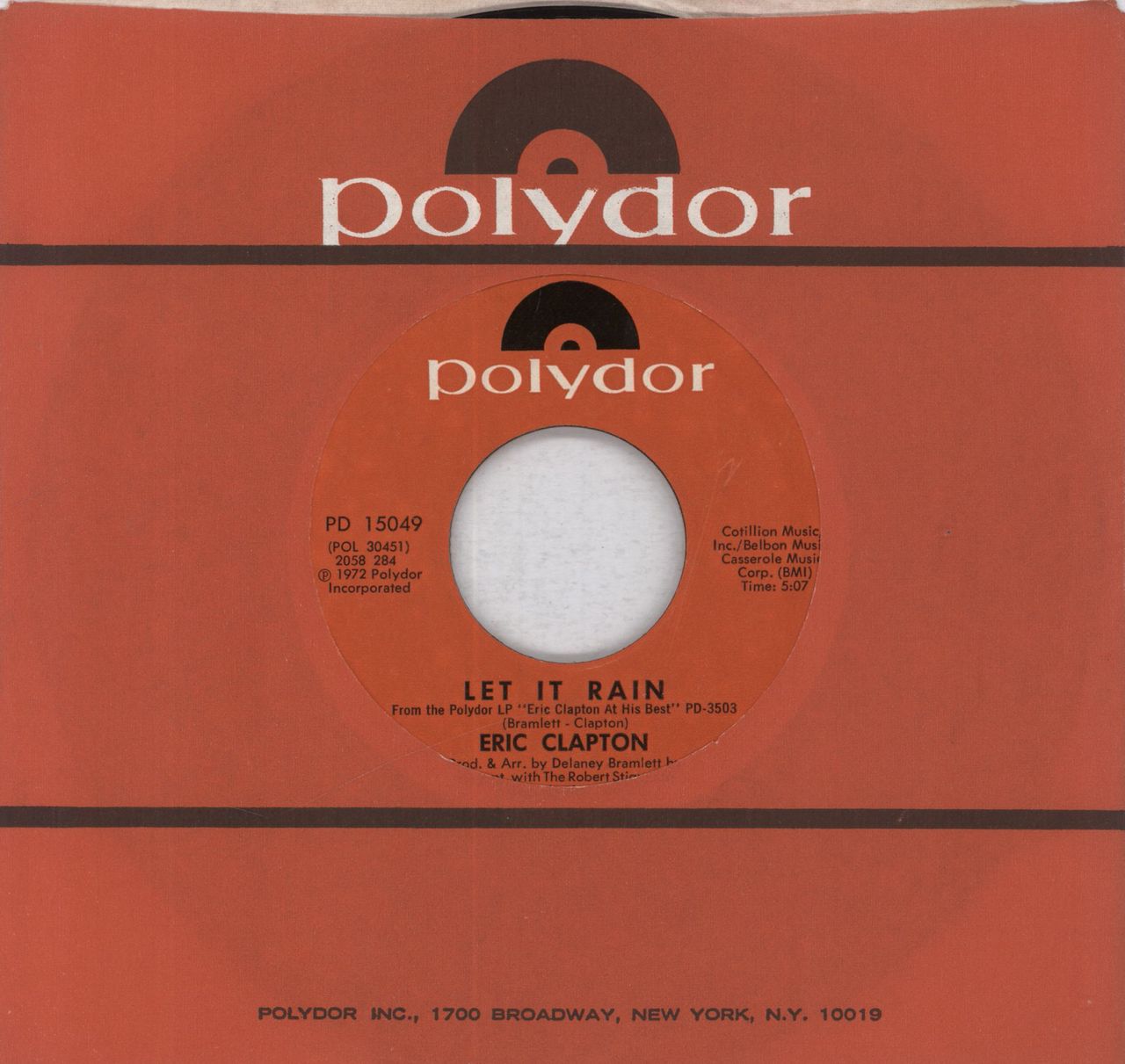 ERIC CLAPTON Let It Rain (1972 US wide centre 7" also