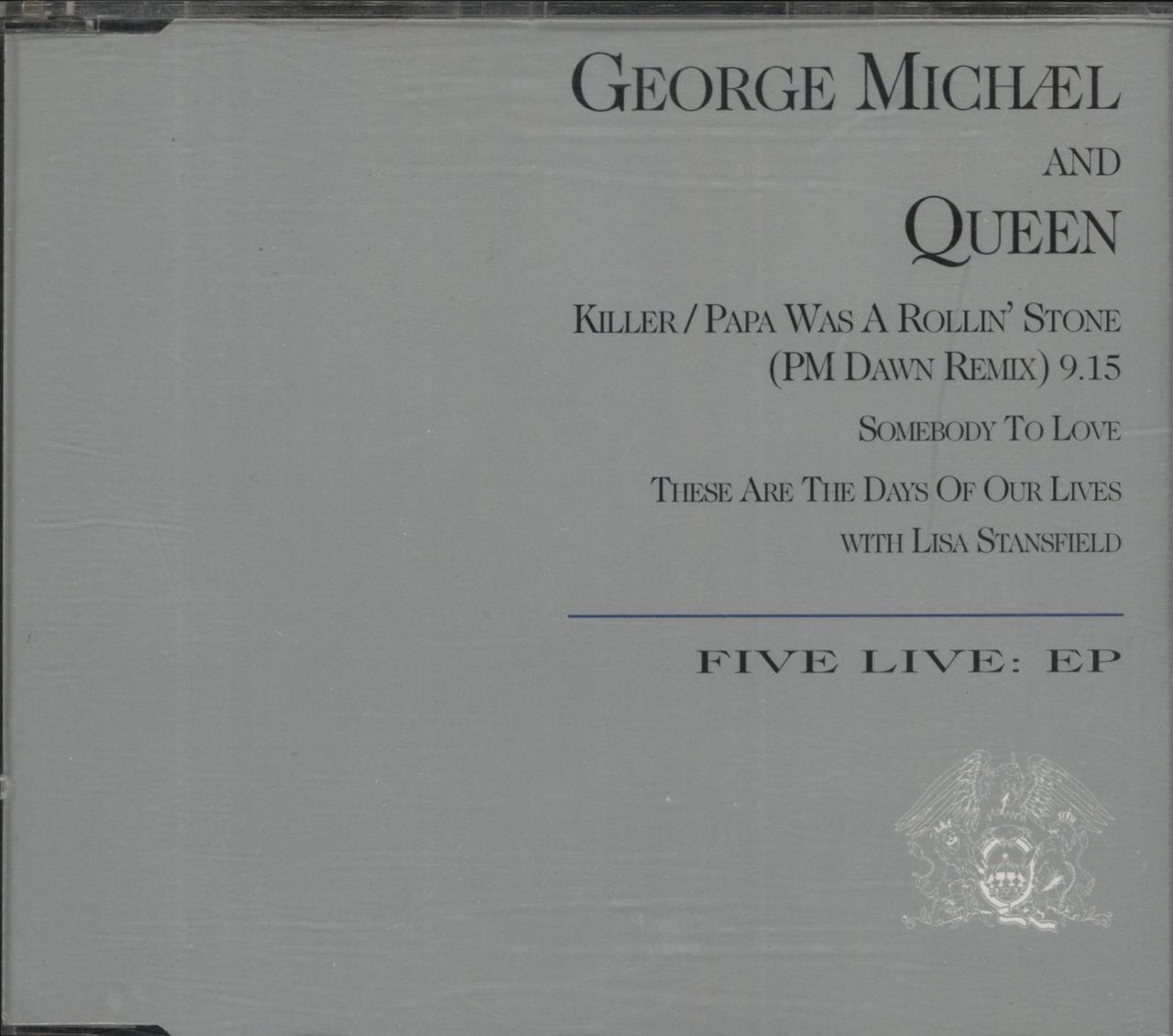 GEORGE MICHAEL & QUEEN Five Live EP (1993 UK 3-track picture CD single featuring the PM Dawn Remix of Killer/Papa Was A Rollin' Stone, Somebody To Love and These Are The Days Of Our Lives with Lisa Stansfield, title sleeve CDR6340)