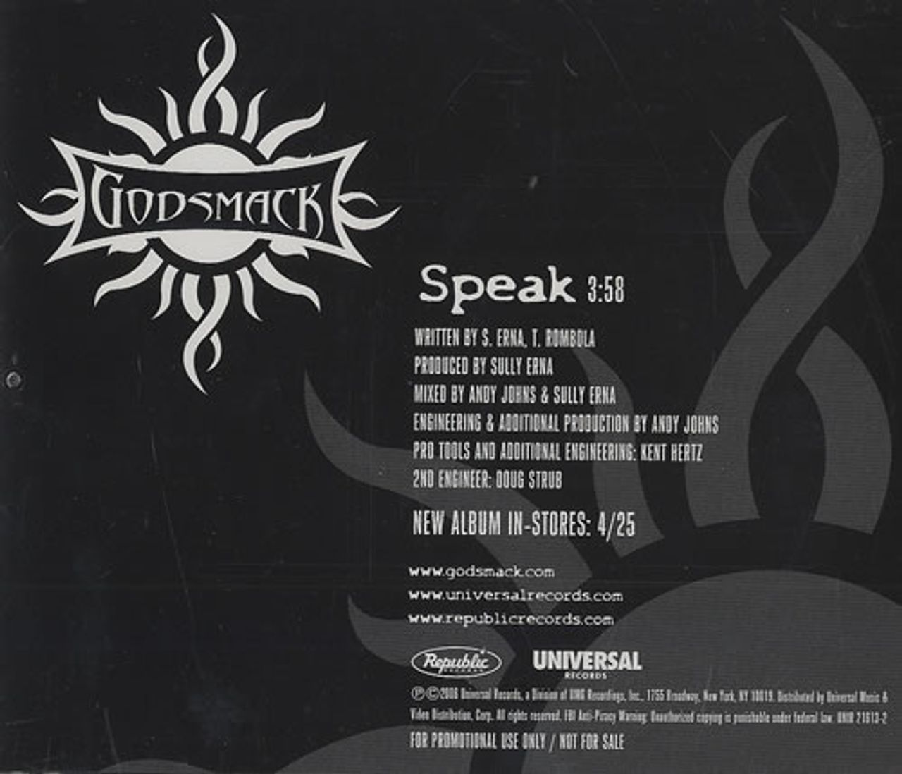 GODSMACK Speak (2006 US 1-track promotional CD for the song