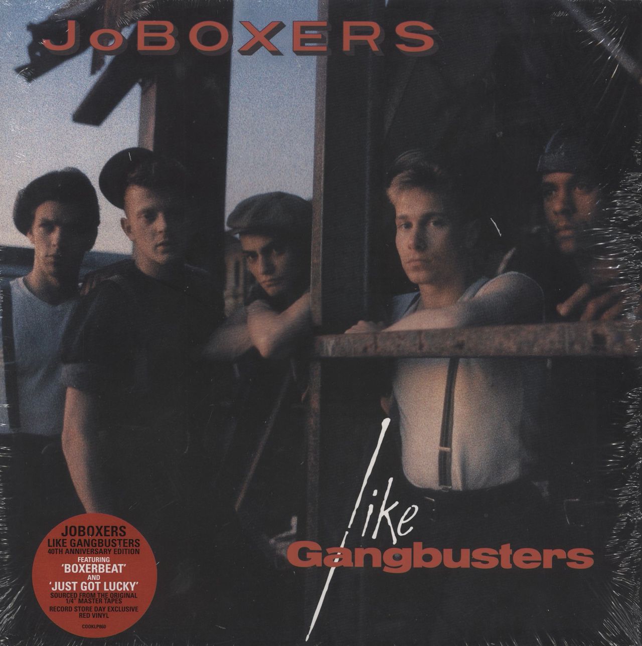 JOBOXERS Like Gangbusters (Record Store Day 2023 UK/EU exclusive limited edition 10-track remastered LP pressed on Red Vinyl. The group's debut album originally releasedin 1983, including the hit singles Boxerbeat, Just Got Lucky and Johnny Friendly, housed in a single pocket picture sleeve with printed inner. This example is still in the open shrink with hype sticker attached, and has minimal wear and the vinyl remains in a 'near mint' condition)