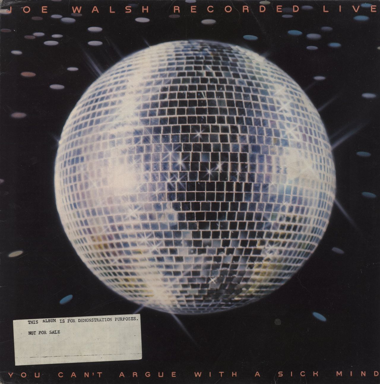 JOE WALSH You Can't Argue With A Sick Mind (1976 UK 6-track LP recorded live on 26th November 1975 at the Santa Monica Civic Auditorium, just before he joined The Eagles, who also make a guest appearance on Help Me Through The Night, picture sleeve with illustrated inner. The sleeve shows only minor wear with white 'Not For Sale' demo sticker & the vinyl remains in Excellent condition and just a few signs of play ABCL5156)