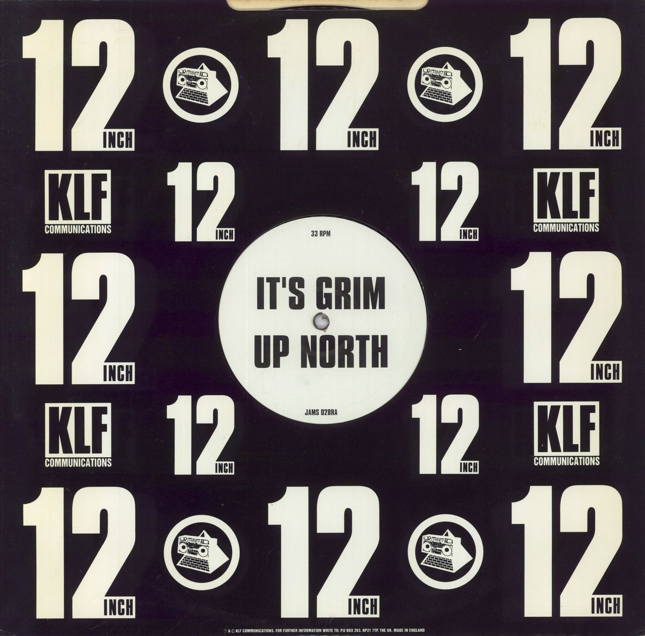 JUSTIFIED ANCIENTS OF MU MU It's Grim Up North (1991 UK 12" vinyl single with Part 1 and 2. Die-cut record label sleeve. The vinyl has only minor superficial signs of play and wear JAMS028R)