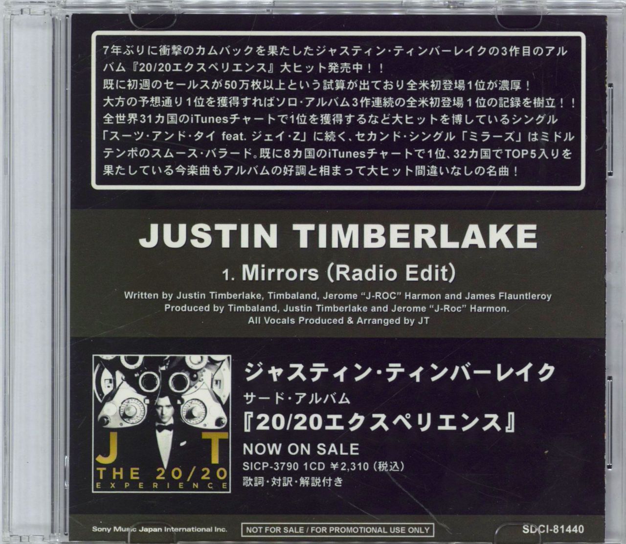 Justin Timberlake Mirrors - Radio Edit Japanese Promo CD-R acetate