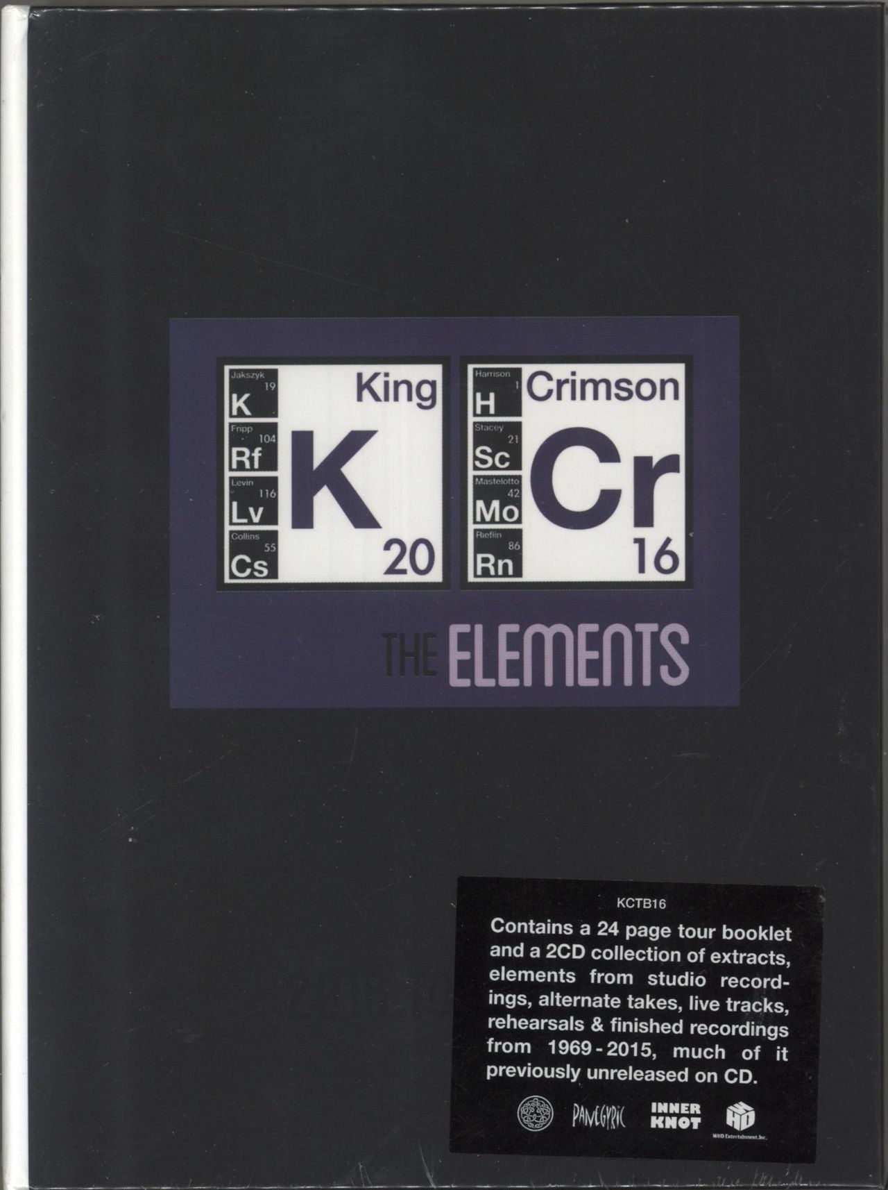 KING CRIMSON The Elements - 2016 Tour Box (2016 UK 29-track Two CD compilation. Featuring a fantastic collection of extracts, elements from studio recordings, alternate takes, live tracks, rehearsals and finished recordings from 1969-2015, most of which has not been released on CD before, beautifully packaged and housed in a hype-stickered UV varnished book-stlye case with the two CDs nestled inside and a fully illustrated 24-page booklet with track information, liner notes, photography, memorabilia, equipment information and 2016 tour listing. Sealed and unplayed KCTB16)