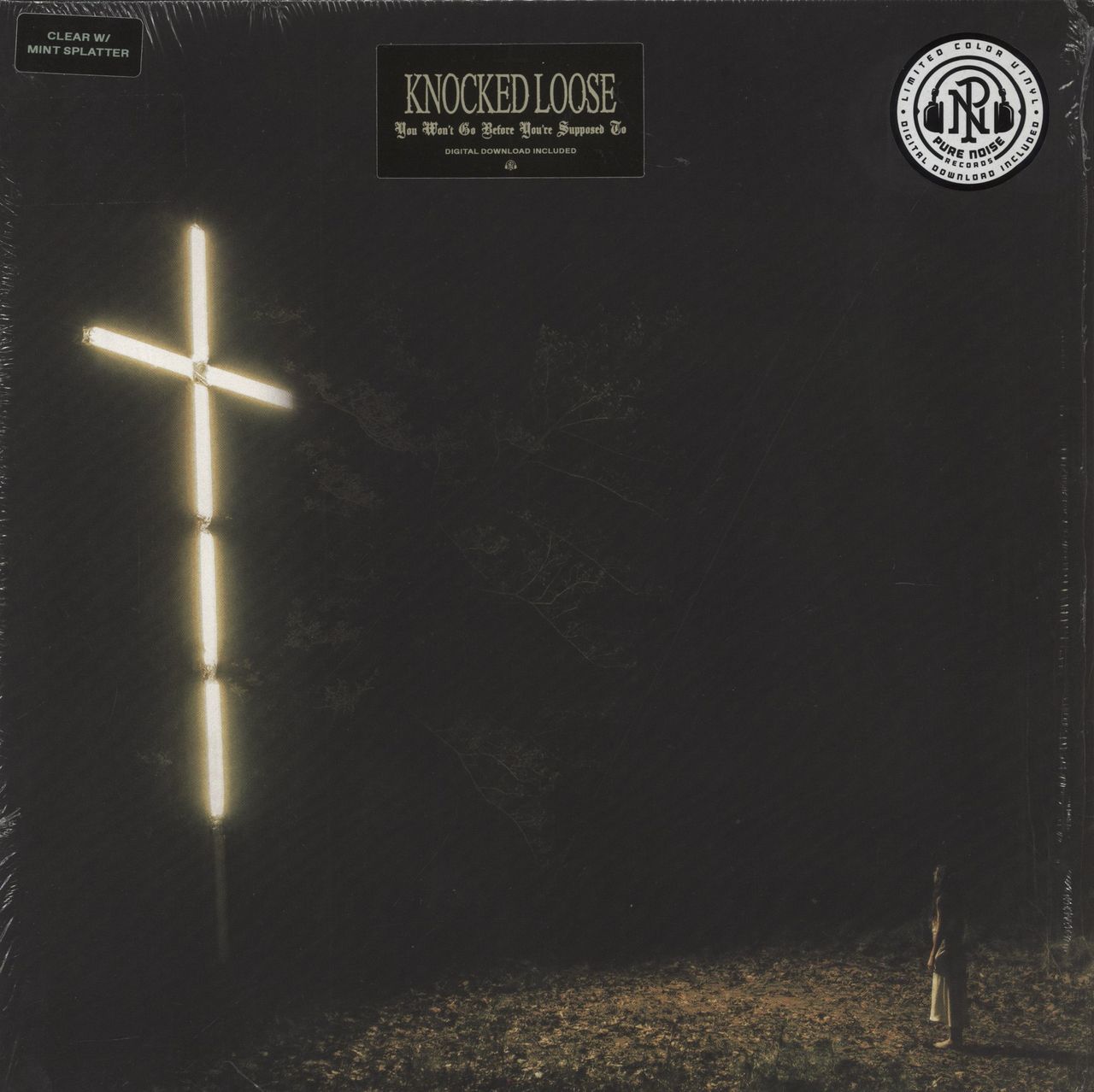 KNOCKED LOOSE You Won’t Go Before You’re Supposed To (2024 UK/EU 10-track LP, pressed on Clear with Mint Green Splatter Vinyl. Third album by the American metalcore band; keeping faithful to their signature gritty sound but with polished production from Drew Fulk. Picture sleeve with printed die-cut inner with download card. The sleeve remains in the hype-stickered shrink. A Near Mint copy! ***Limited to only 7500 copies*** PNE409)