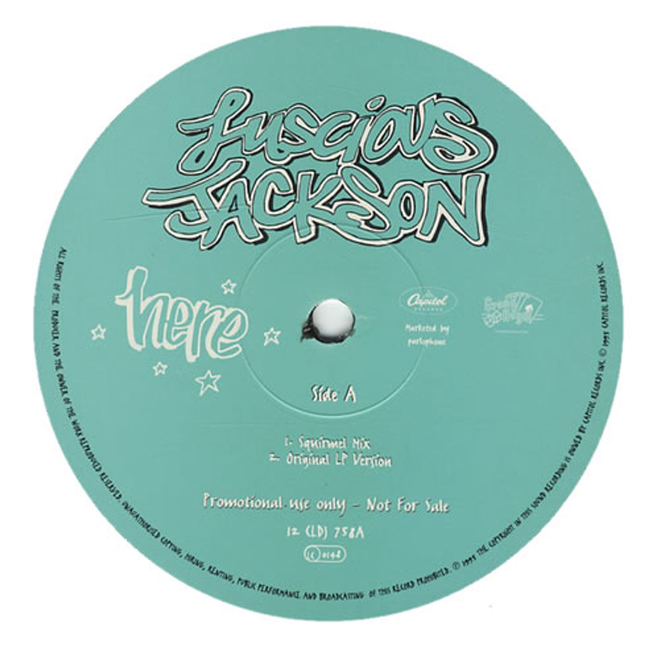 LUSCIOUS JACKSON Here (1995 UK 4-mix promotional 12" vinyl single including Squirmel Mix, Tricky Love/Hate Mix and Explosion Mix, plain white die-cut sleeve 12CLDJ758)