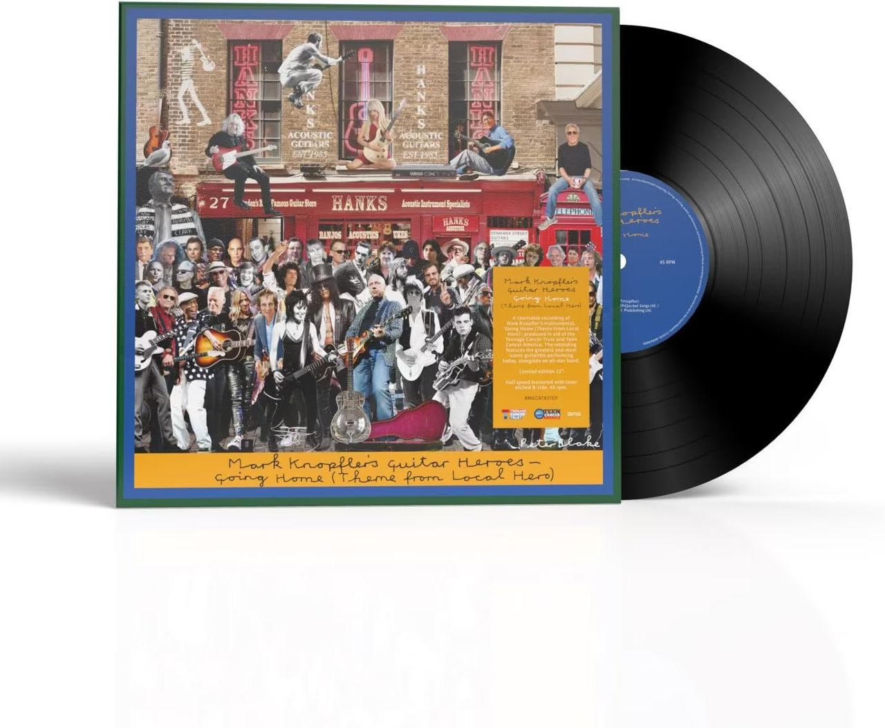 MARK KNOPFLER'S GUITAR HEROES Going Home (Theme From Local Hero) (2024 UK/EU limited edition black vinyl 12" single half-speed mastered and featuring a laser-etched B-side. A charitable recording of Mark Knopfler’s instrumental Going Home (Theme From Local Hero), produced in aid of the Teenage Cancer Trust andTeen Cancer America. The recording features the greatest and most iconic guitarists performing today, alongside an all-star band. Picture sleeve with cover artwork by Sir Peter Blake, hype sticker & factory sealed)
