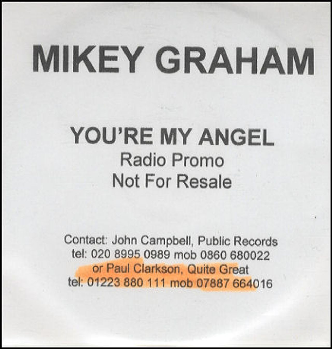 MIKEY GRAHAM You're My Angel (Year 2000 UK Public Records